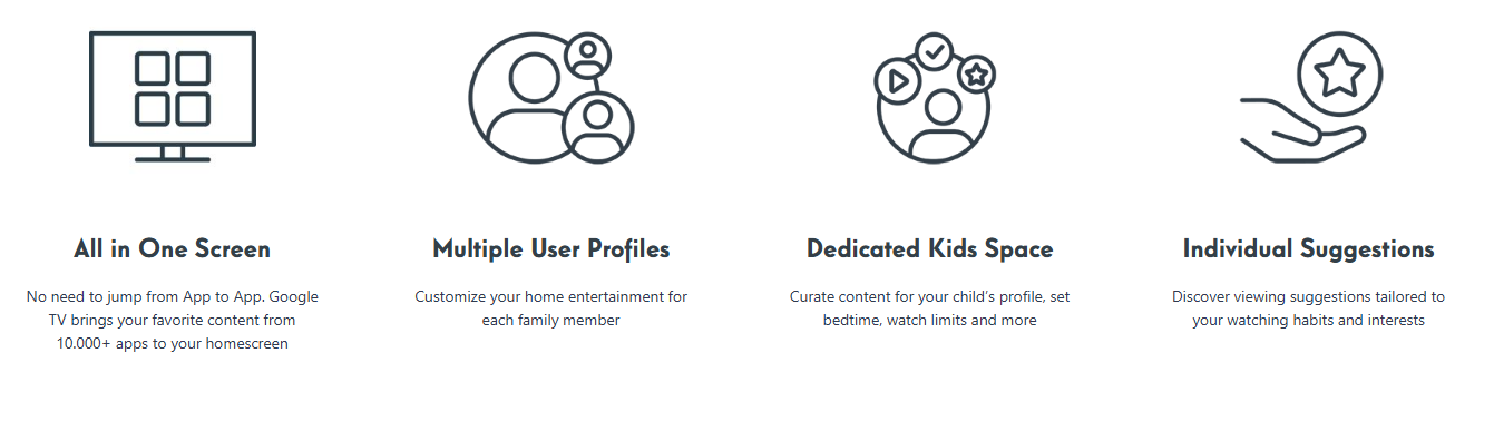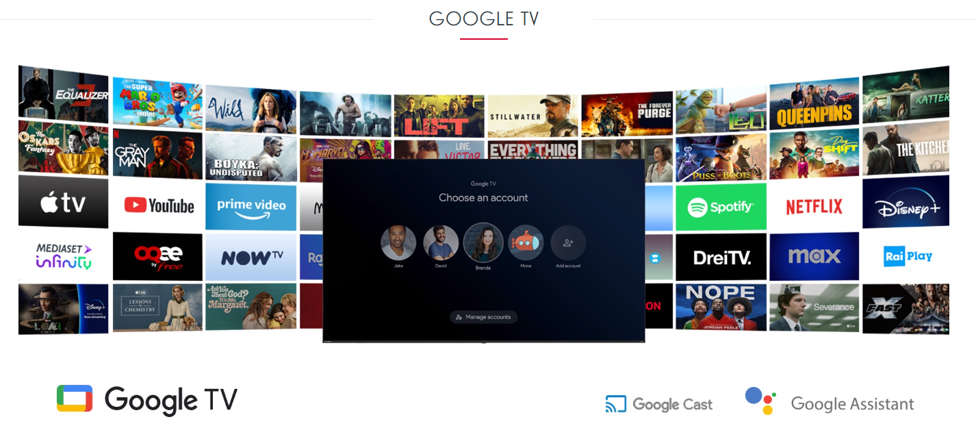 • ჩაშენებული Chromecast, HbbTV, მედიაპლეიერი