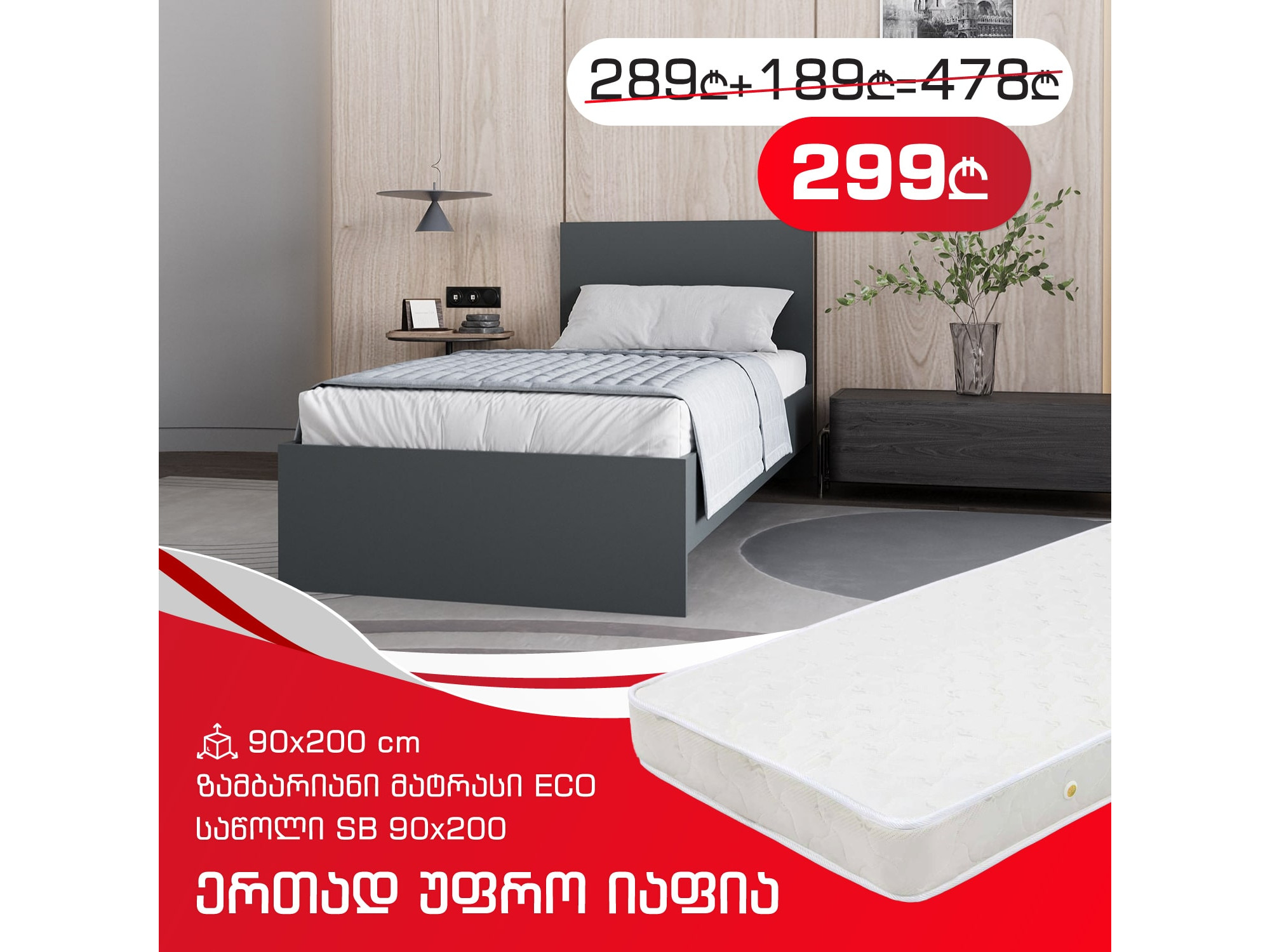 საძინებლის გარნიტურები + ზამბარიანი მატრასი