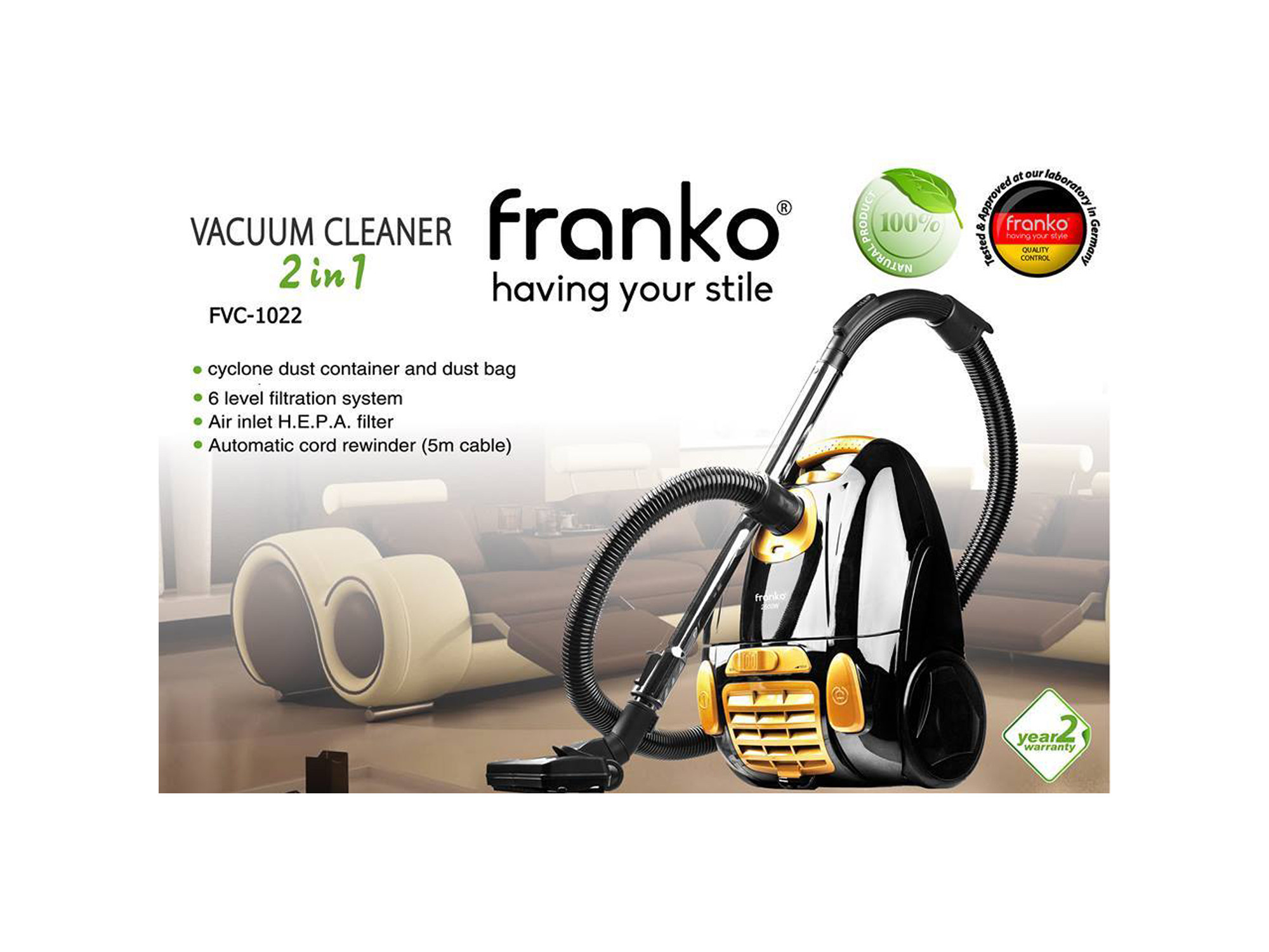 ძირითადი ატრიბუტები მტვერსასრუტი FRANKO FVC-1022