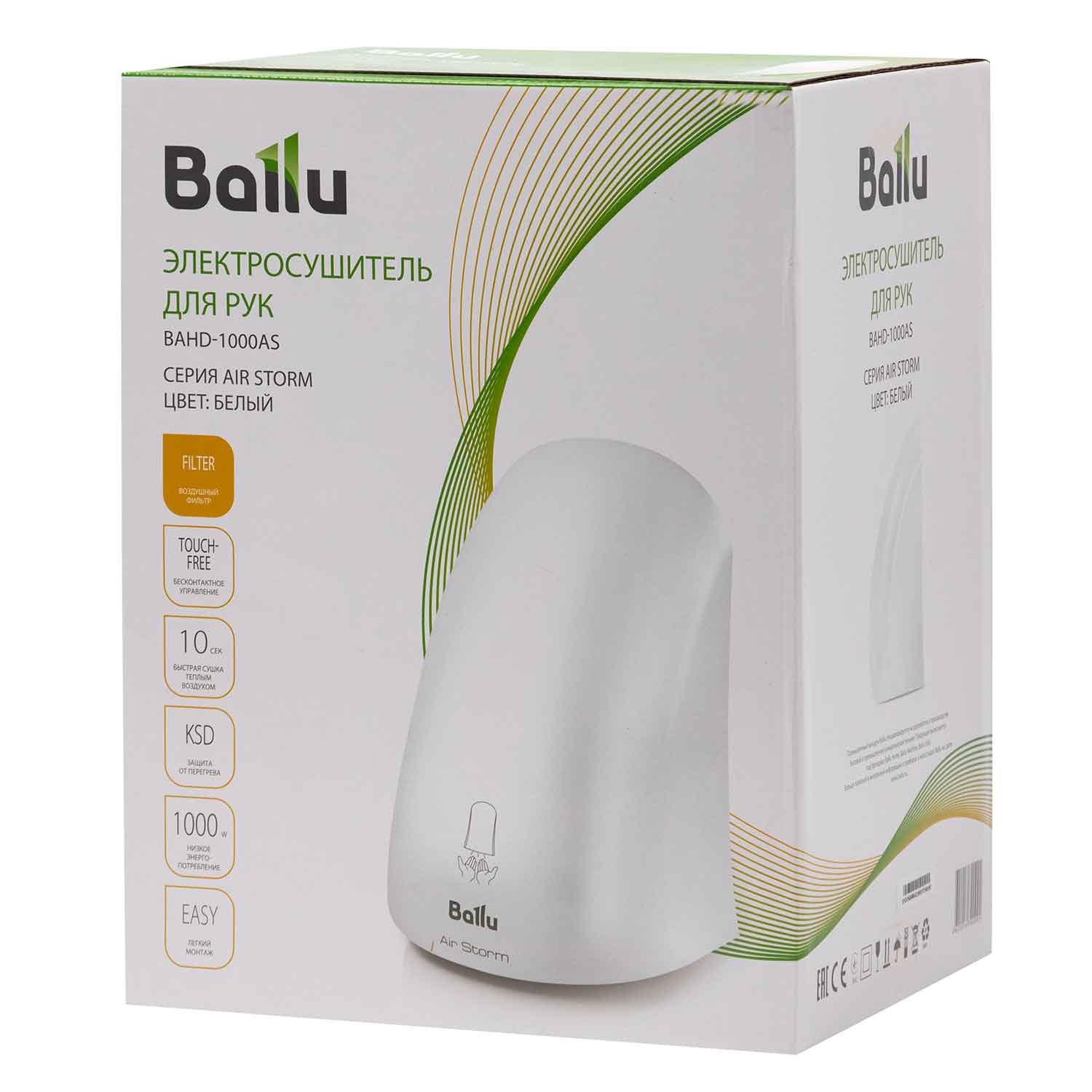 Main attributes hand dryer BALLU BAHD-1000AS (WH)