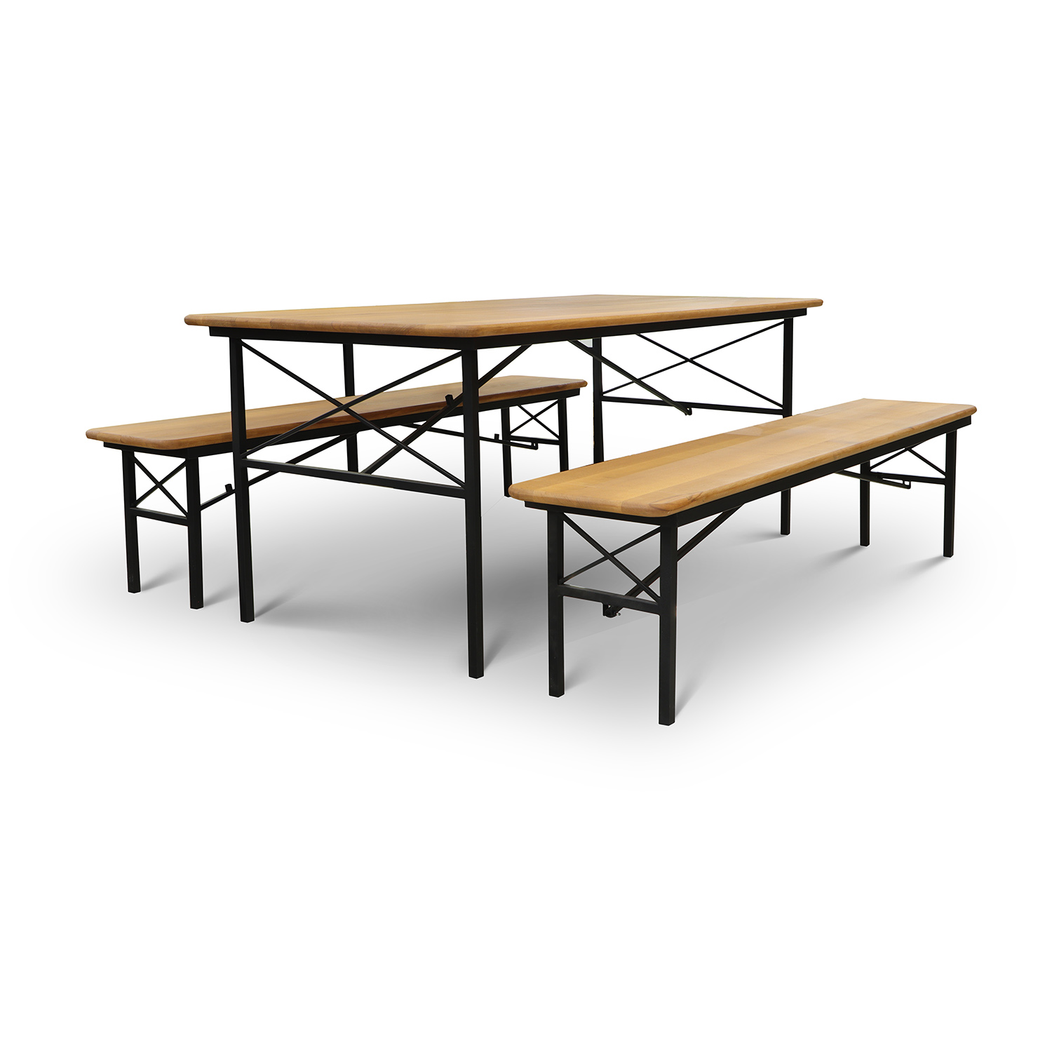 BENCH SET 1 + 2 METAL BLACK/WOOD TIK (3)