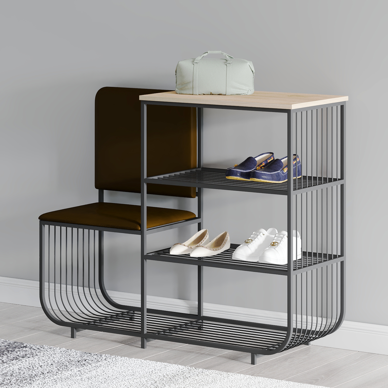 shoe shelf HOBEL WMX-SH-666 METAL BLACK BROWN L (1)