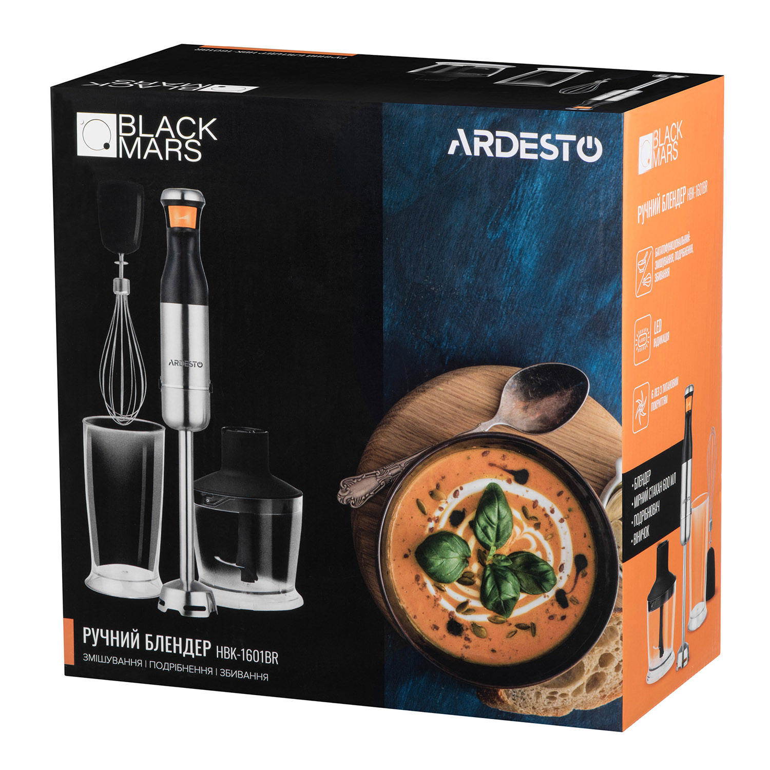 Main attributes hand blender ARDESTO HBK-1601BR