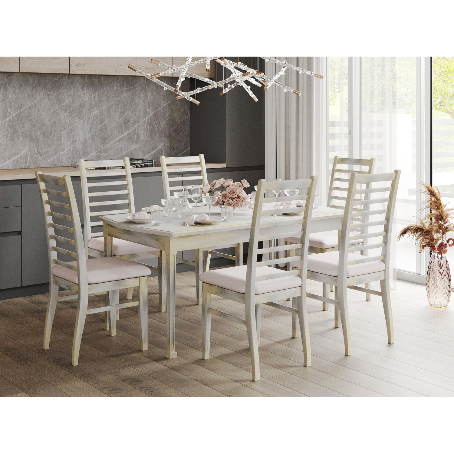 Main attributes dining table VEGA X64 WAVY (90X160X200) ANTIK GOLD (1)