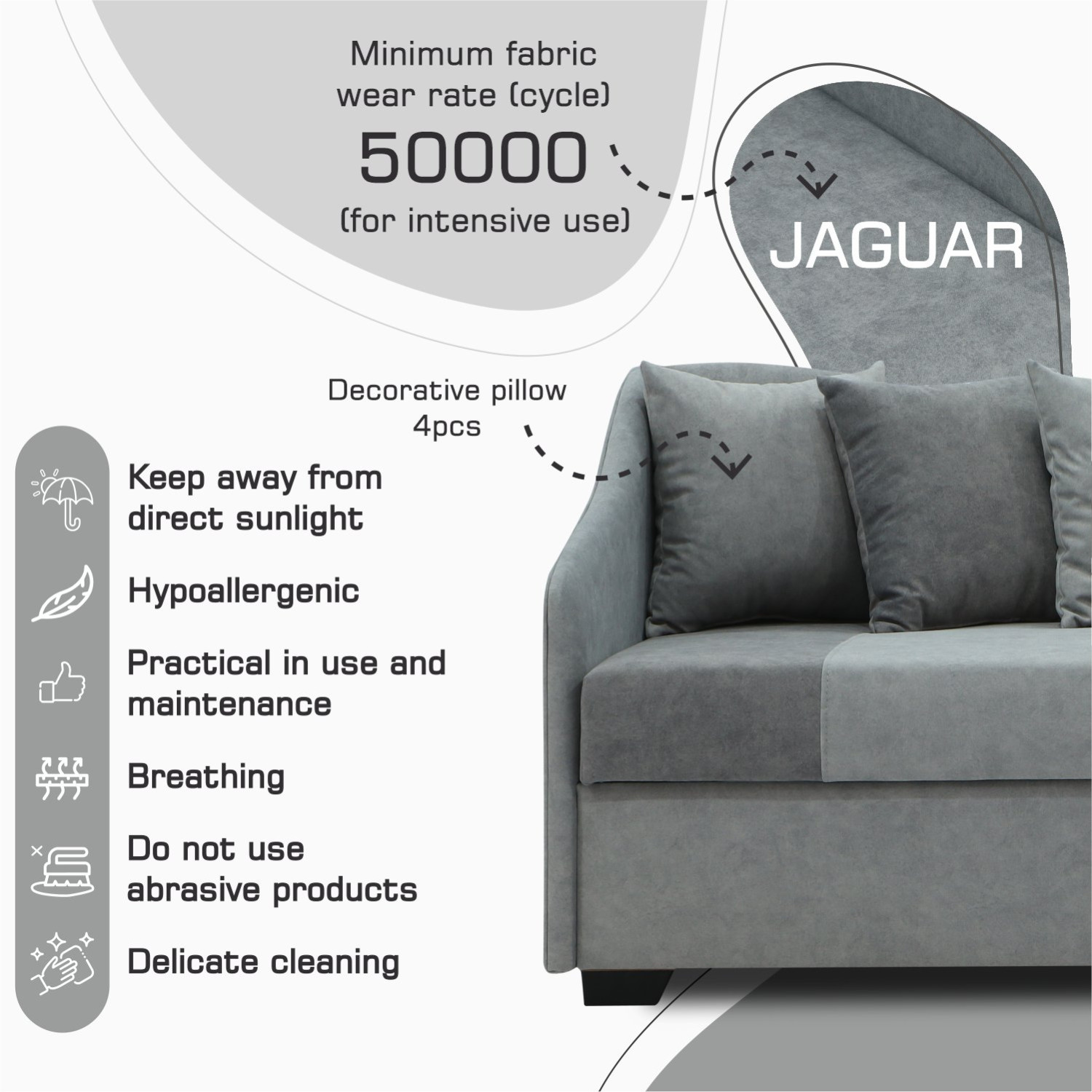 Minimum fabric wear resistance (cycle) 25000 (for intensive use)