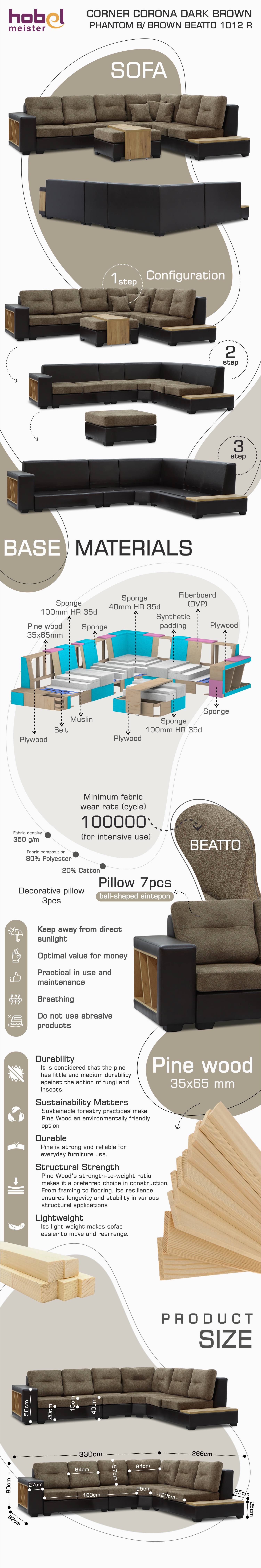 Main attributes sofa HOBEL CORNER CORONA DARK BROWN PHANTOM 8/ BROWN BEATTO 1012 R (7)