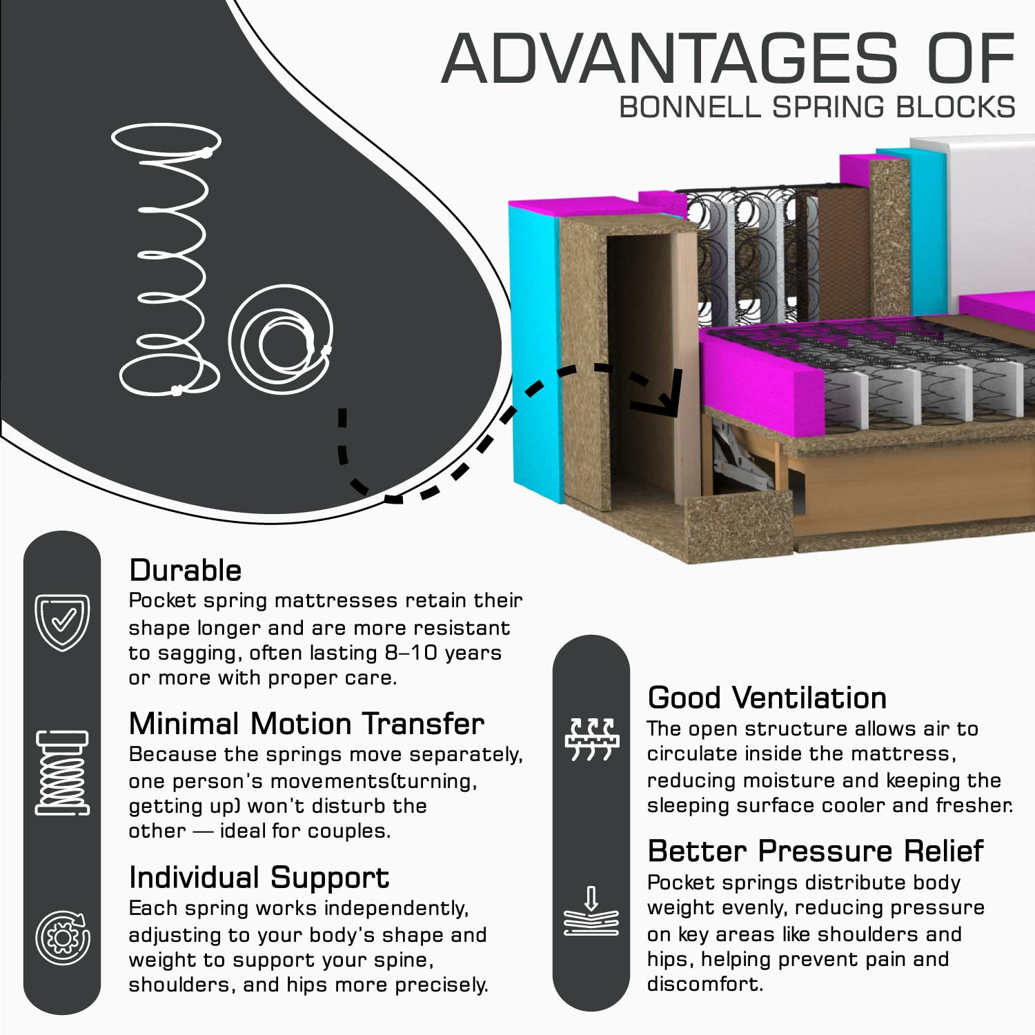 Bonnel spring syst.,spong,siliconized fiber 300 gr.