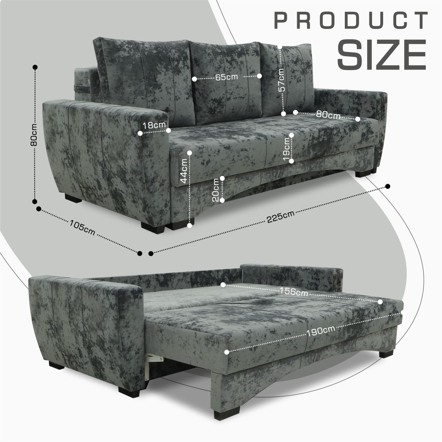 Sofa Dimensions WxDxH (cm)