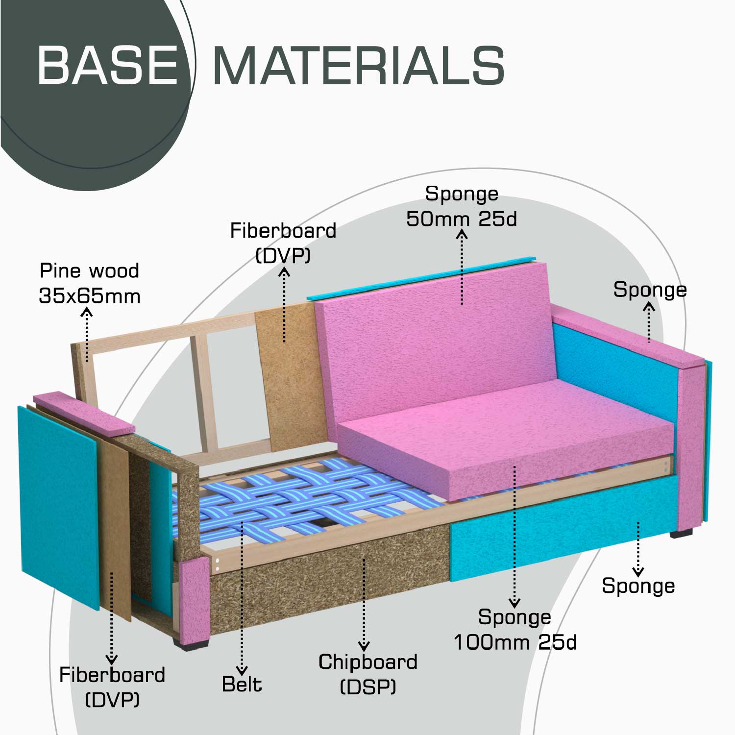 Materials: Laminated chipboard, plywood, pine