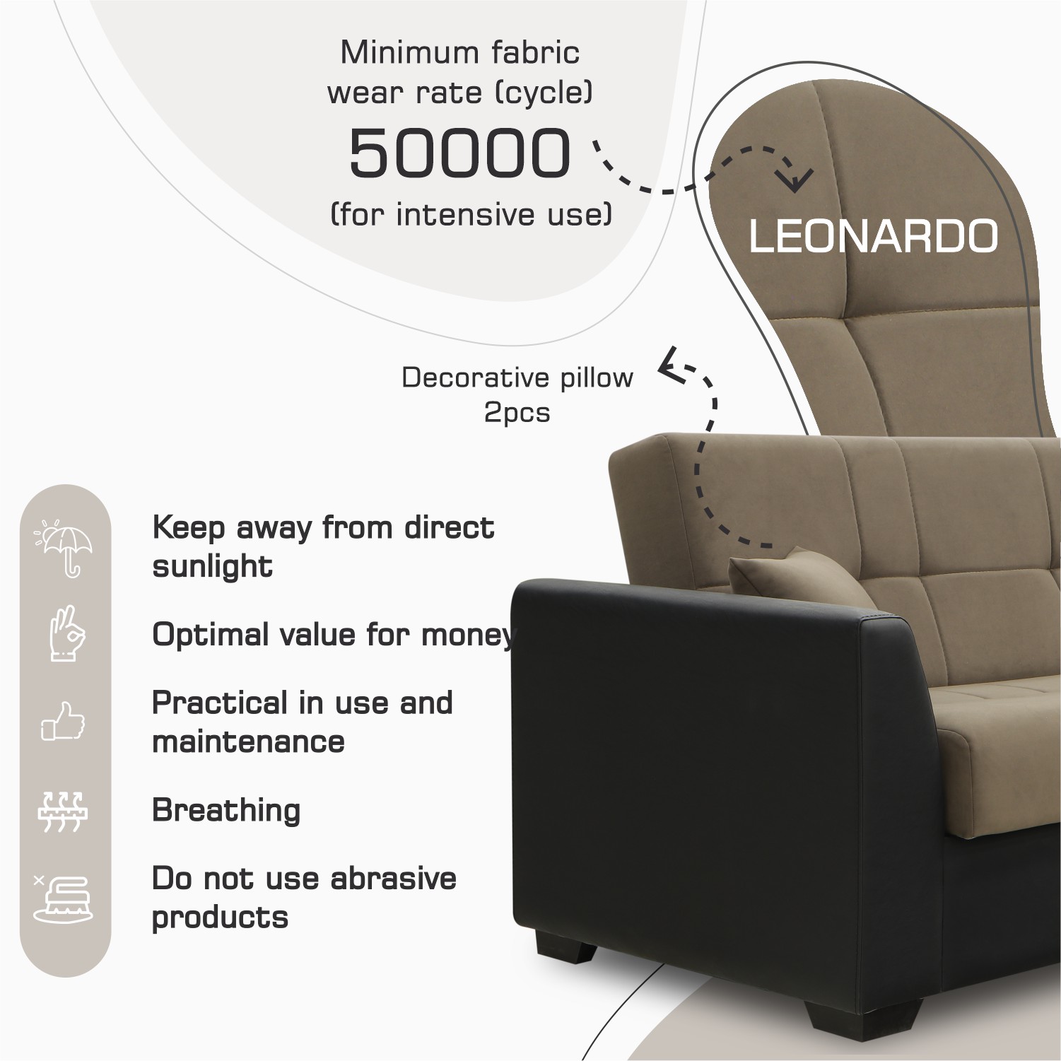 Main attributes sofa HOBEL MODERN LUXE ECONOM F/R BLACK 4503/ BROWN LEONARDO 6 (2)