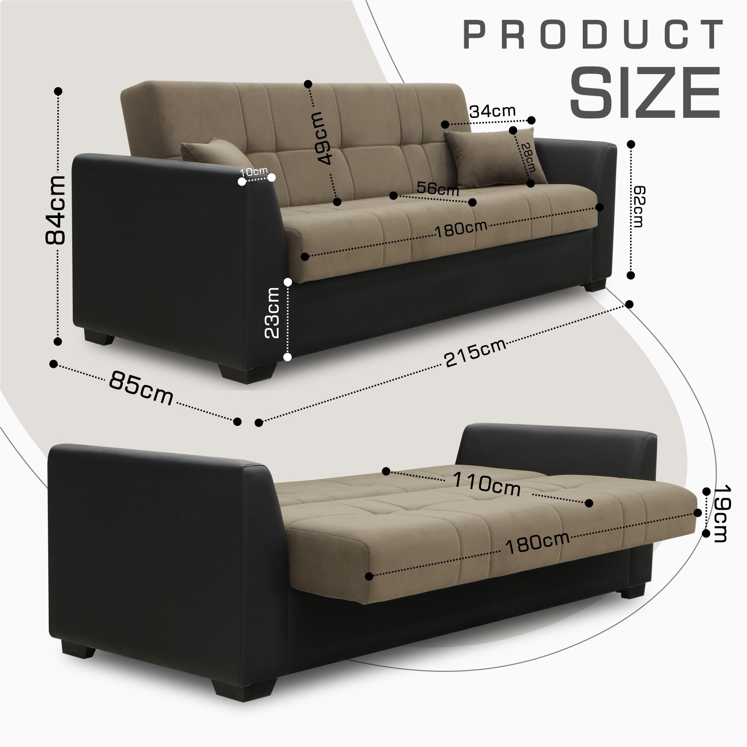 Sofa Dimensions WxDxH (cm)