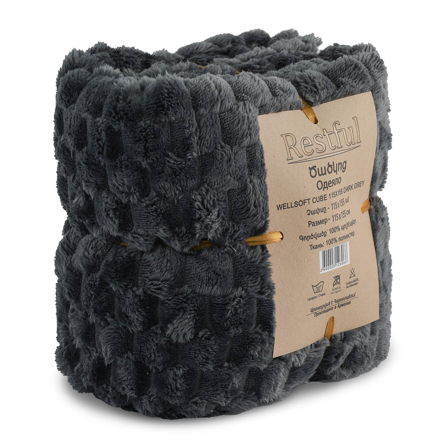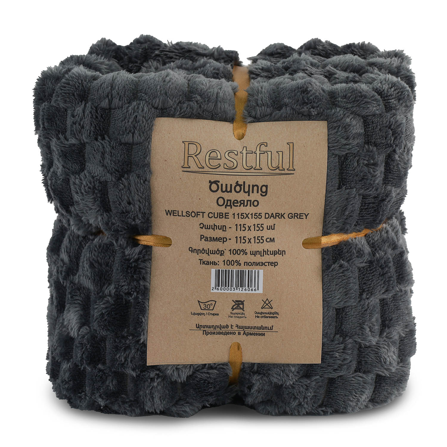 Main attributes plaid RESTFUL WELLSOFT CUBE 115X155 DARK GREY