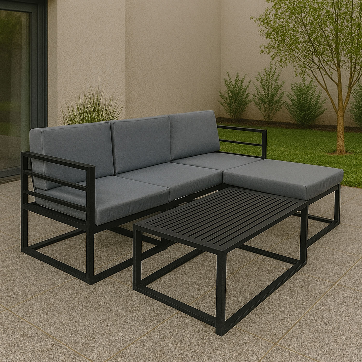 პროდუქტის აღწერა ბაღის გარნიტური HOBEL CORNER DECK METAL BLACK/ LIGHT GREY (5)