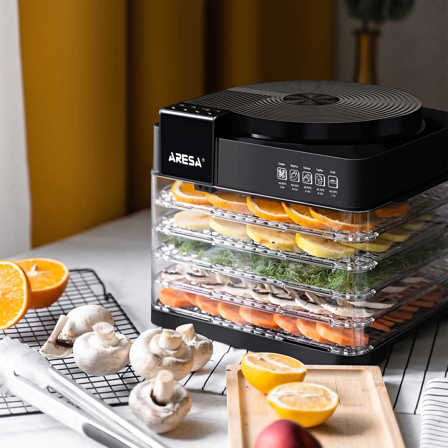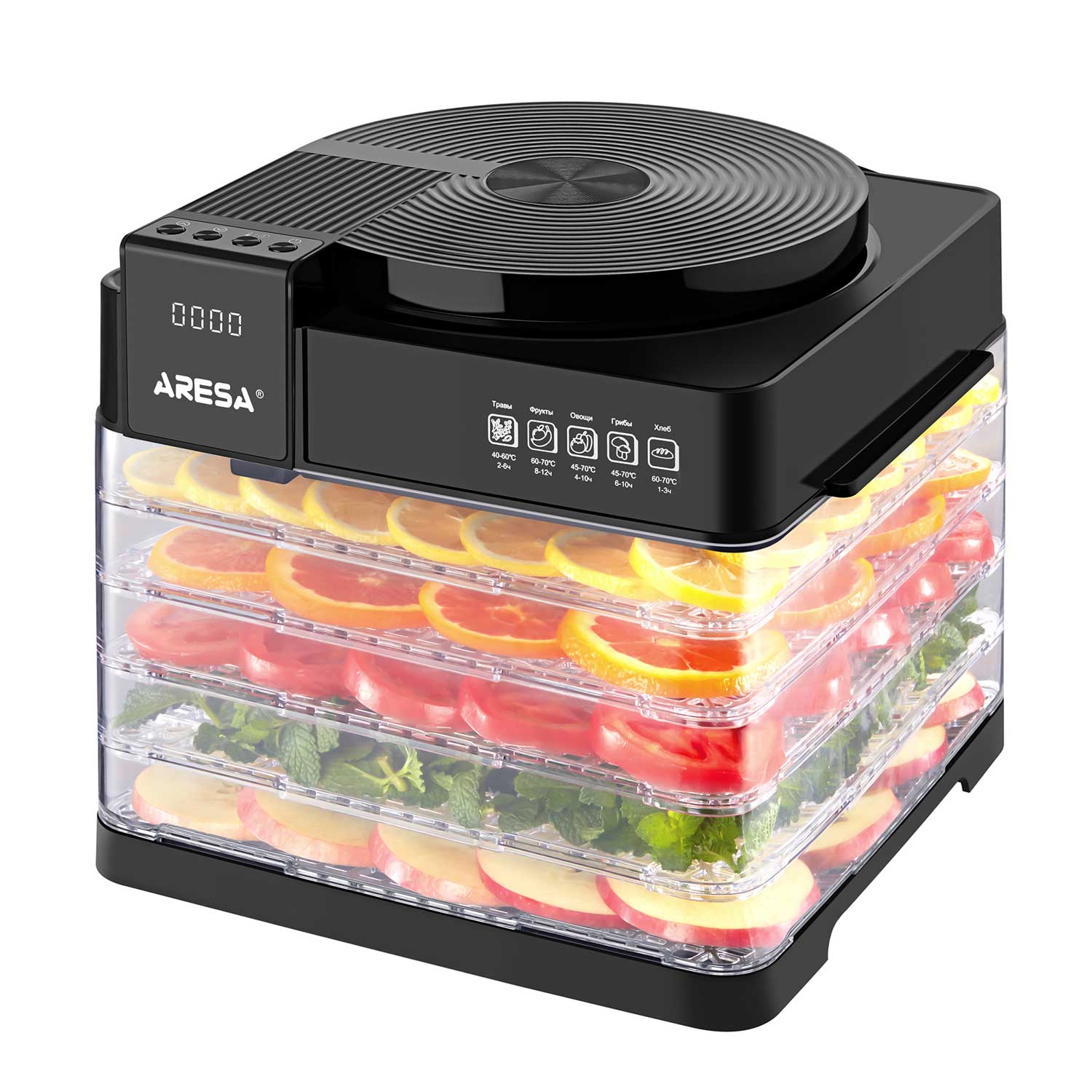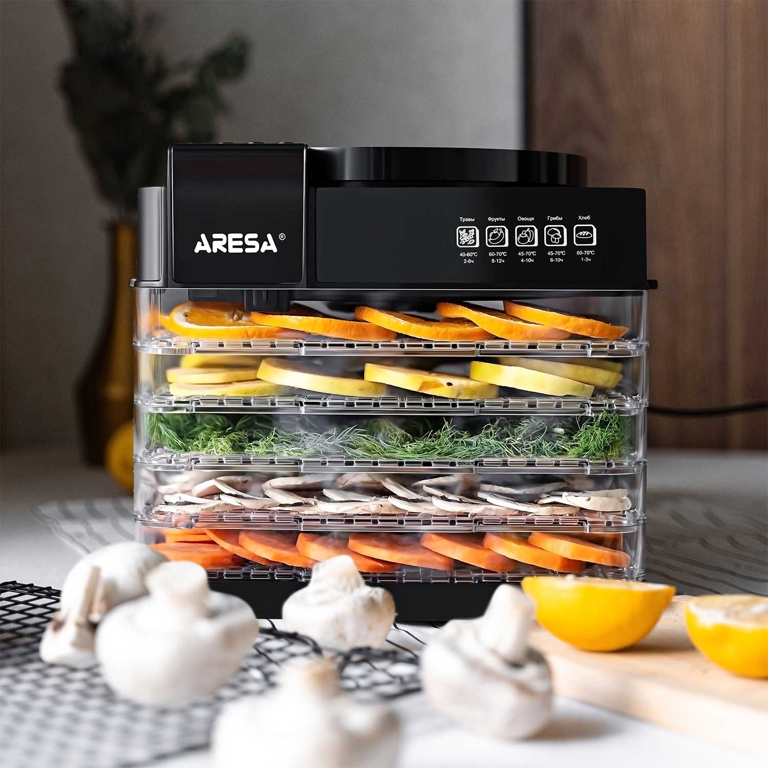 ძირითადი ატრიბუტები ბოსტნეულისა და ხილის საშრობი ARESA AR-2603