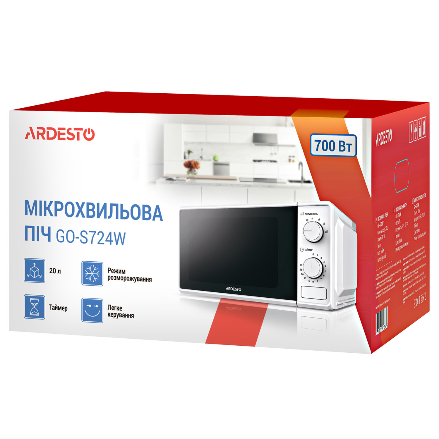 ძირითადი ატრიბუტები მიკროტალღური ღუმელი ARDESTO GO-S724W