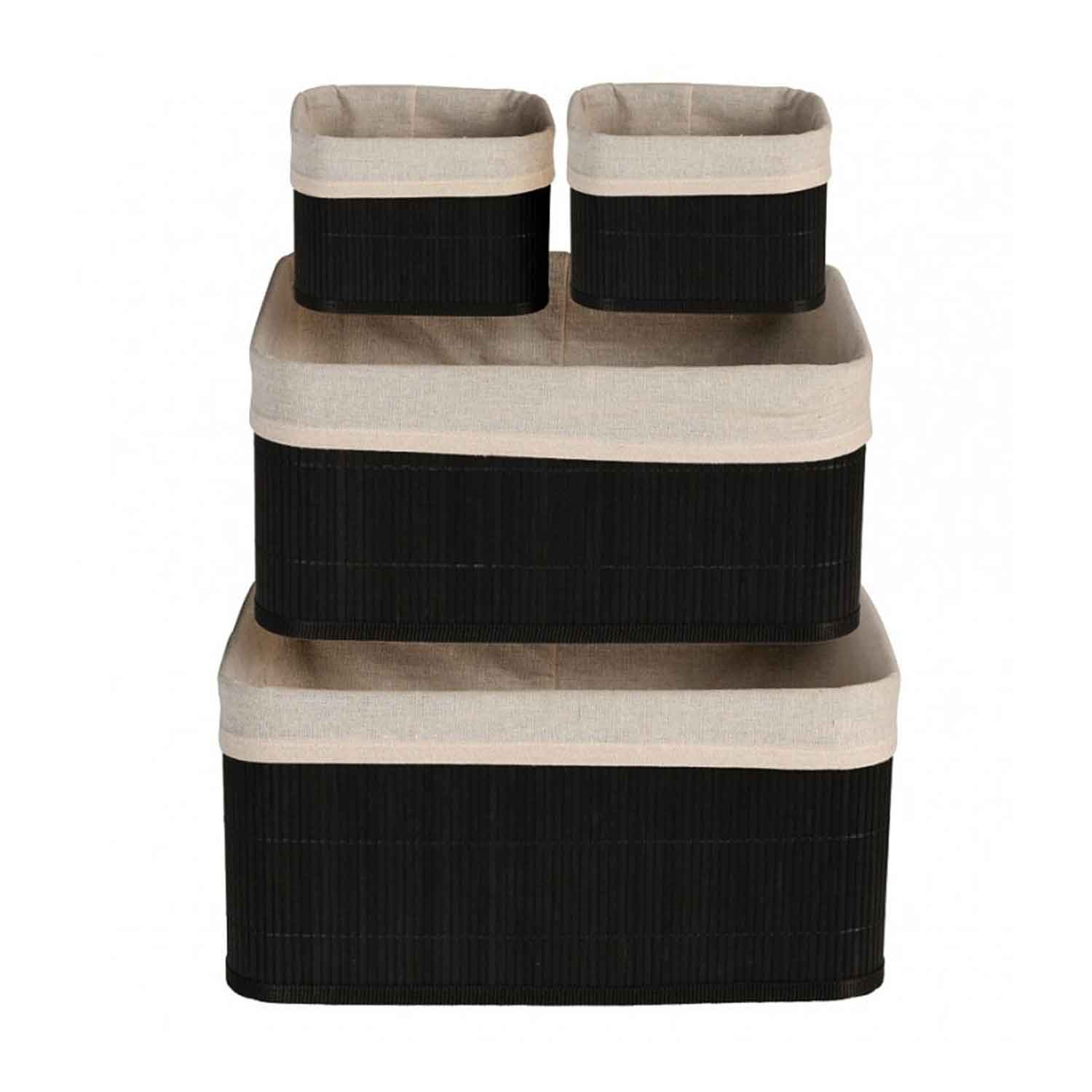 BASKET SET BAMBOO LINEN BLACK
