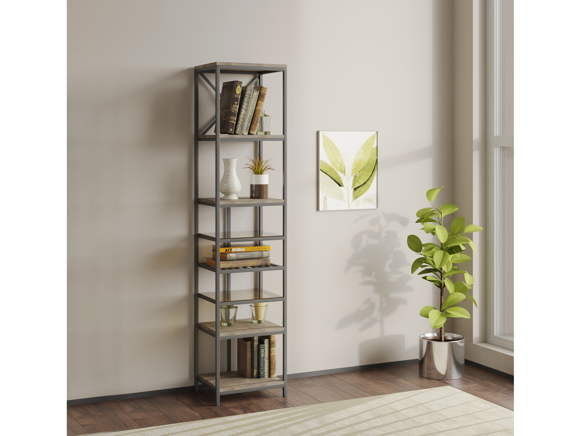 ძირითადი ატრიბუტები წიგნის კარადა და თარო HOBEL LANFEN M-110 METAL BLACK/ GLASS/ K354 (1)
