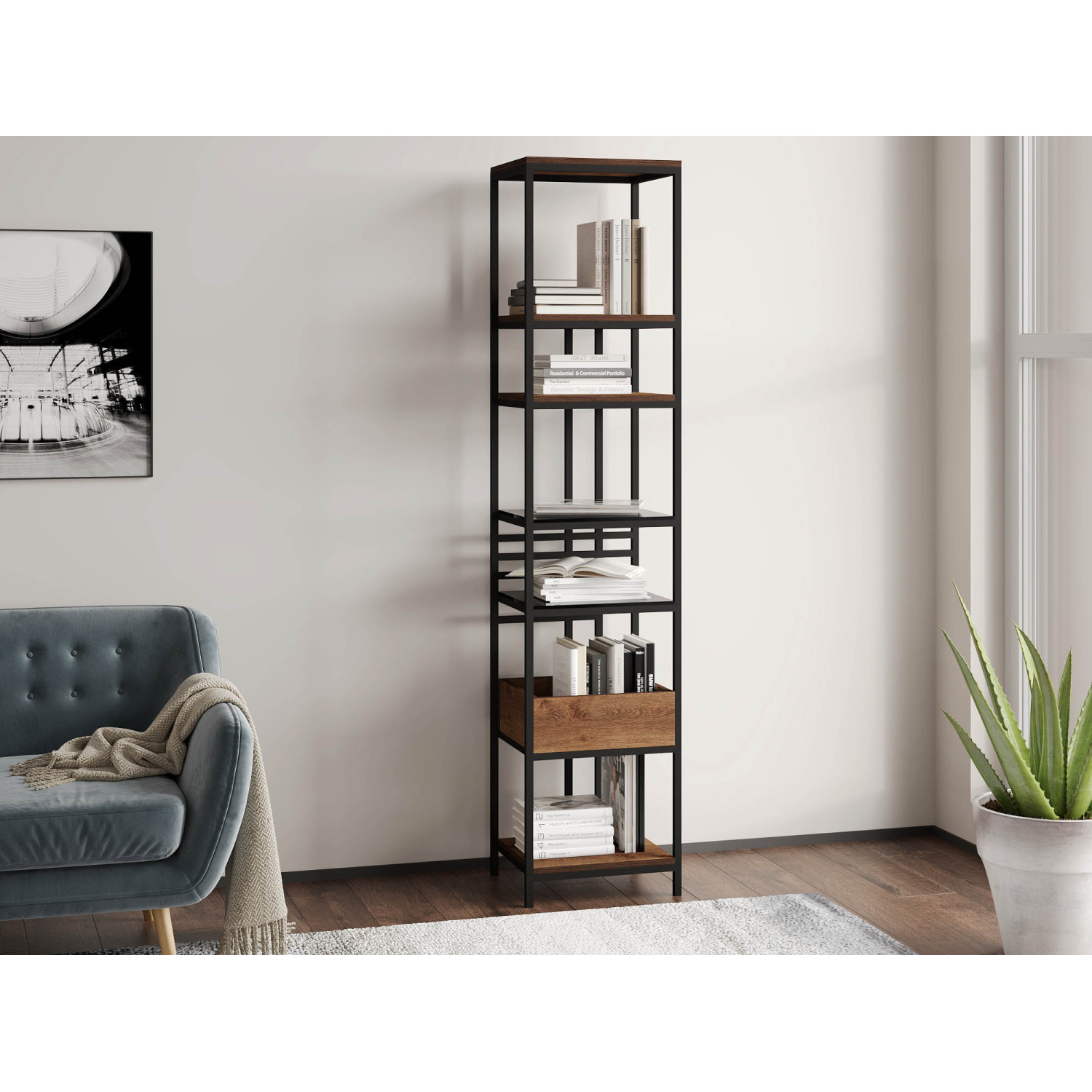 ძირითადი ატრიბუტები წიგნის კარადა და თარო HOBEL LANFEN M-112 BLACK/GLASS FM/K090 (1)
