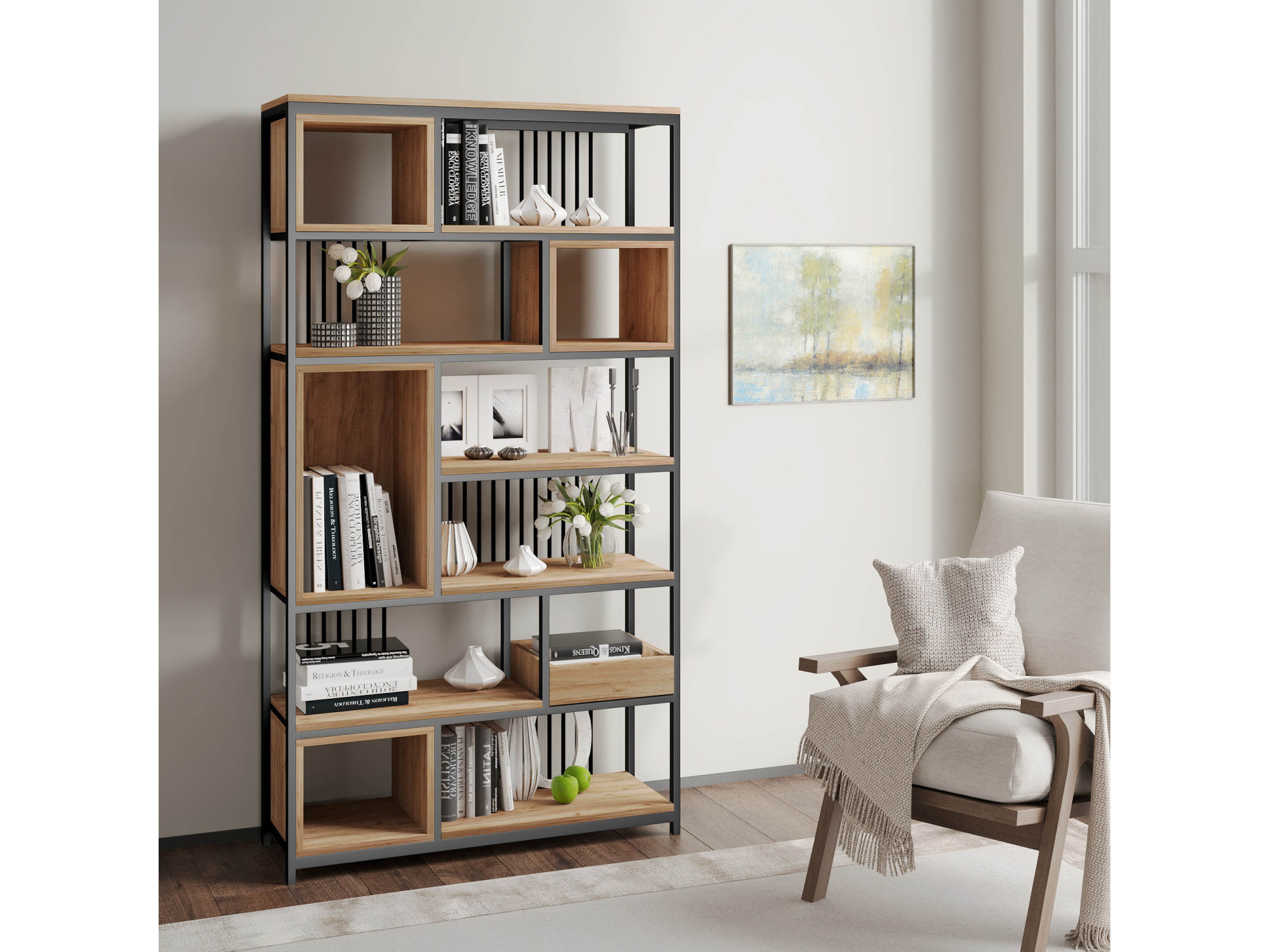 პროდუქტის აღწერა წიგნის კარადა და თარო HOBEL LANFEN M124 METAL BLACK/K004 (1)
