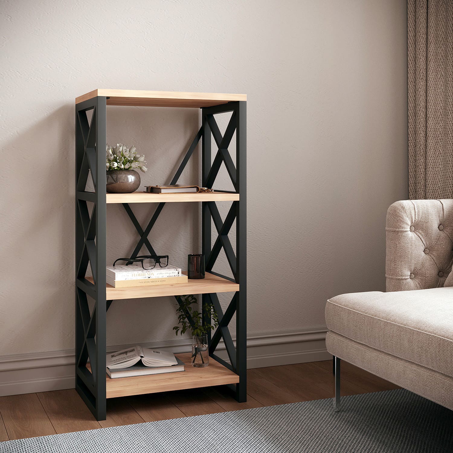 წიგნის კარადა და თარო HOBEL LOFT-SH-139-M BLACK/ K003 (1)