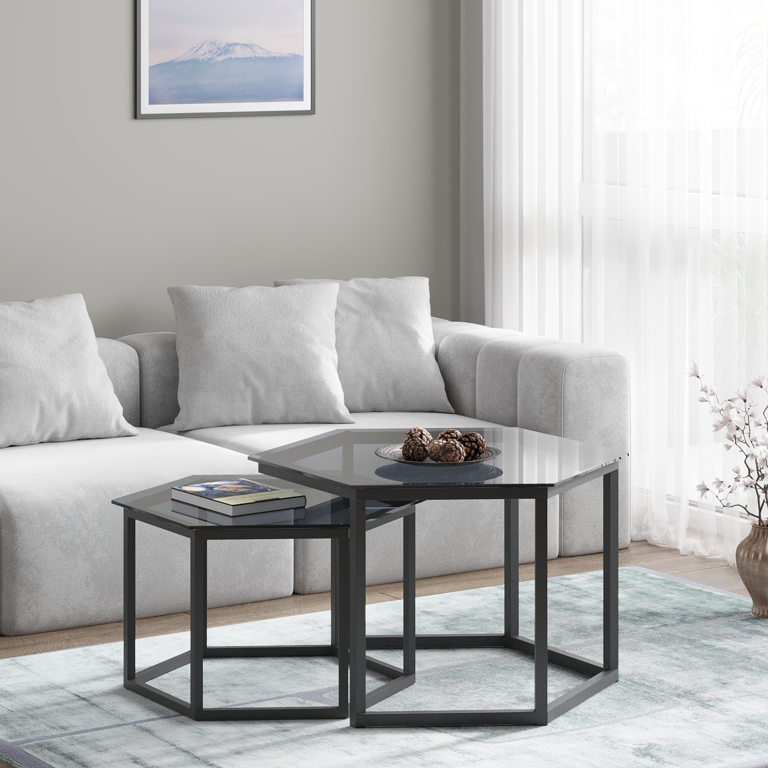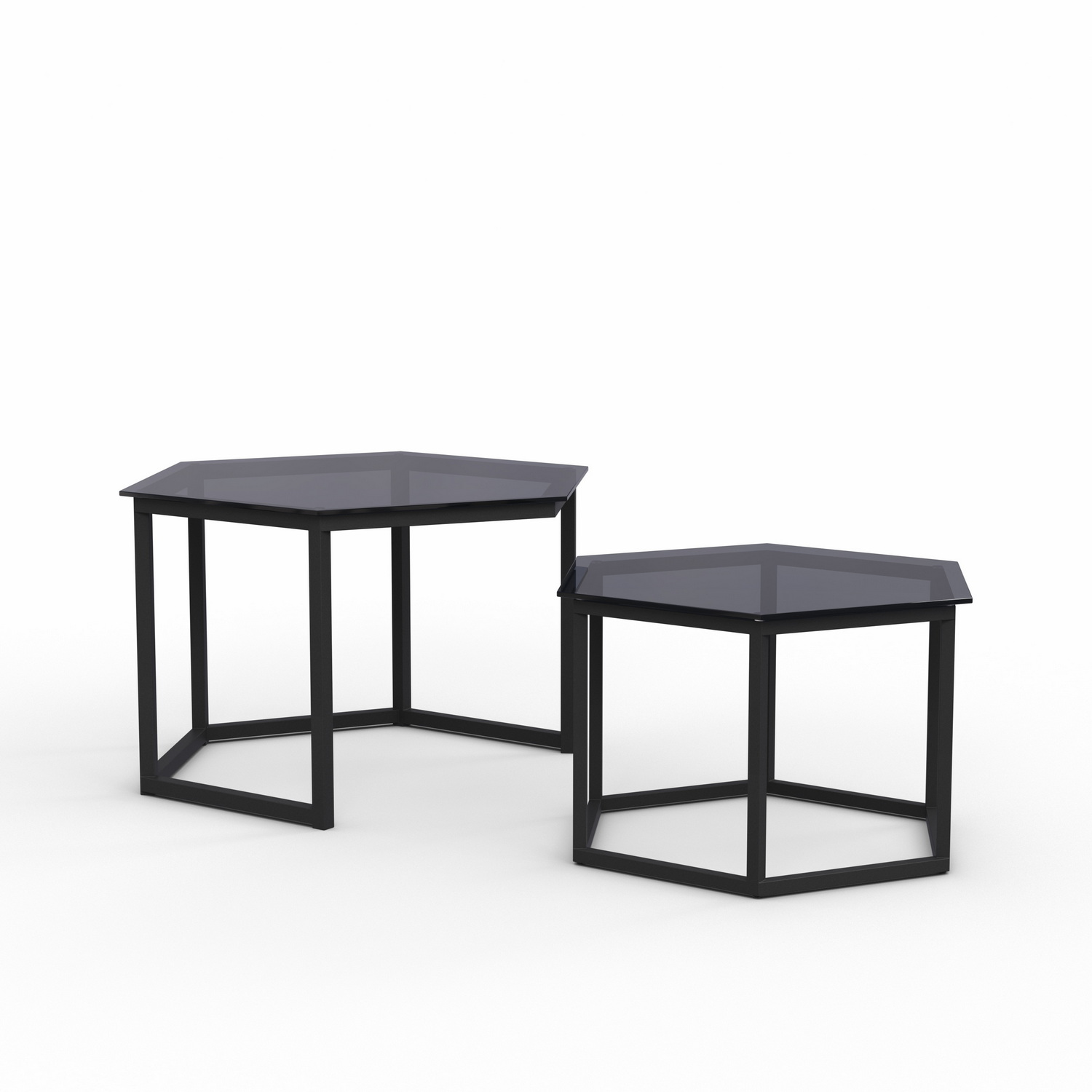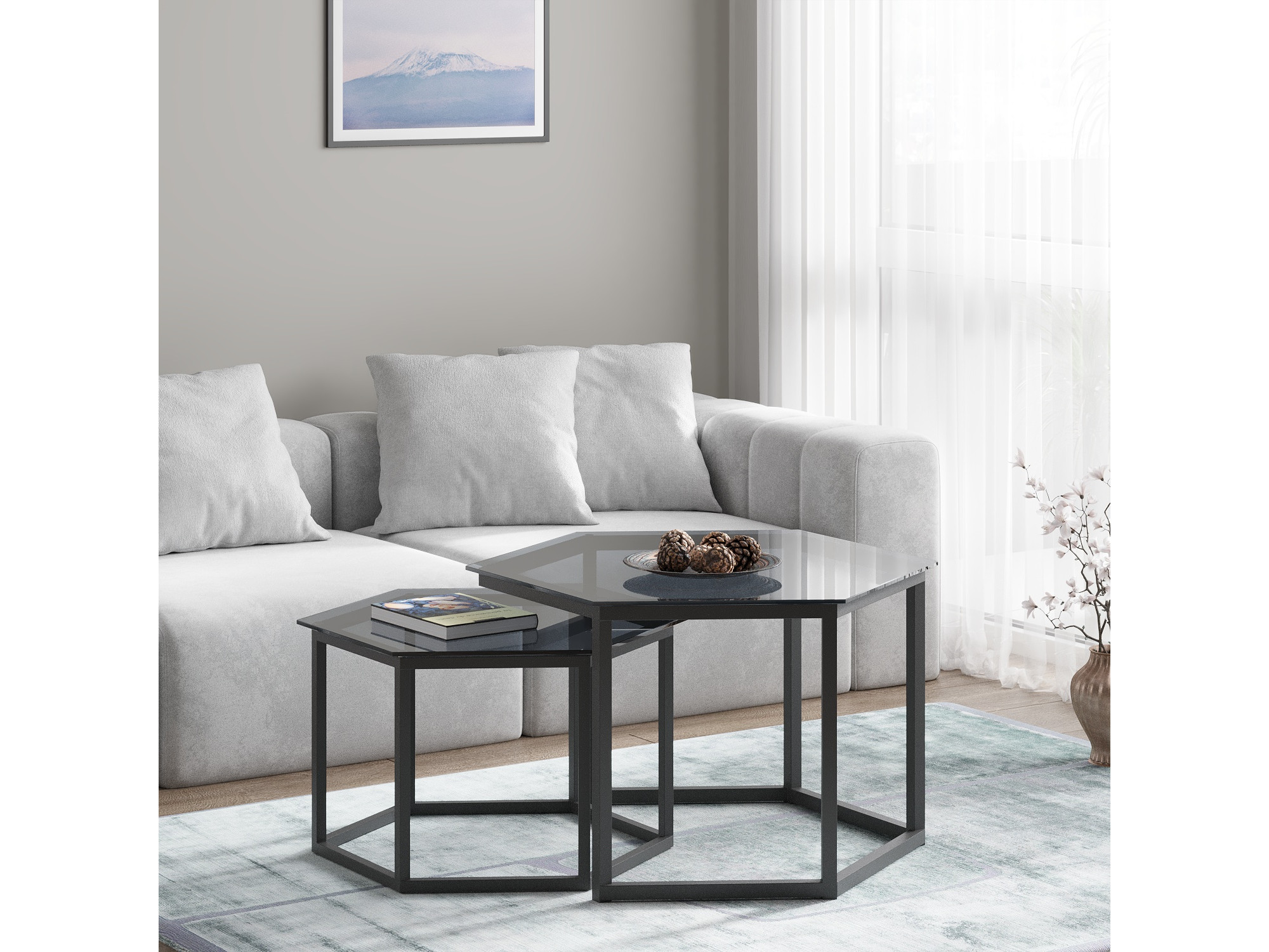 ჟურნალის მაგიდა HOBEL BEEHIVE 2PCS METAL BLACK/ GLASS FM (2)