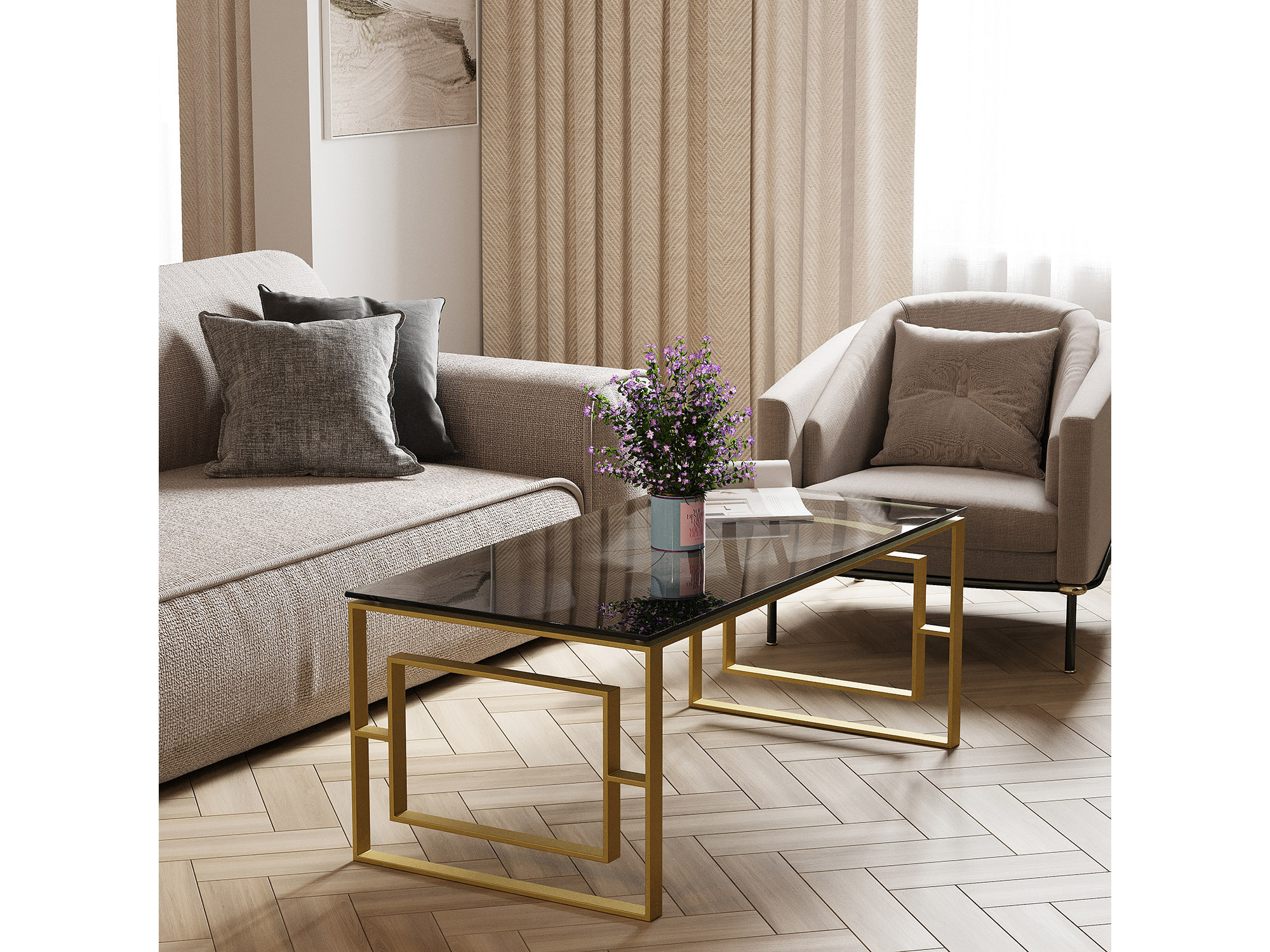 ჟურნალის მაგიდა HOBEL MIRAGE GOLD METAL/BLACK GLASS (1)