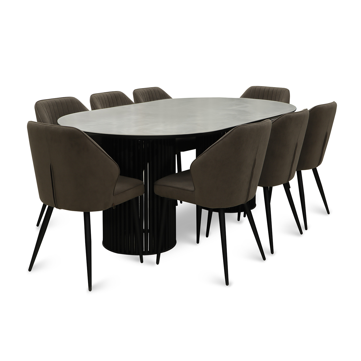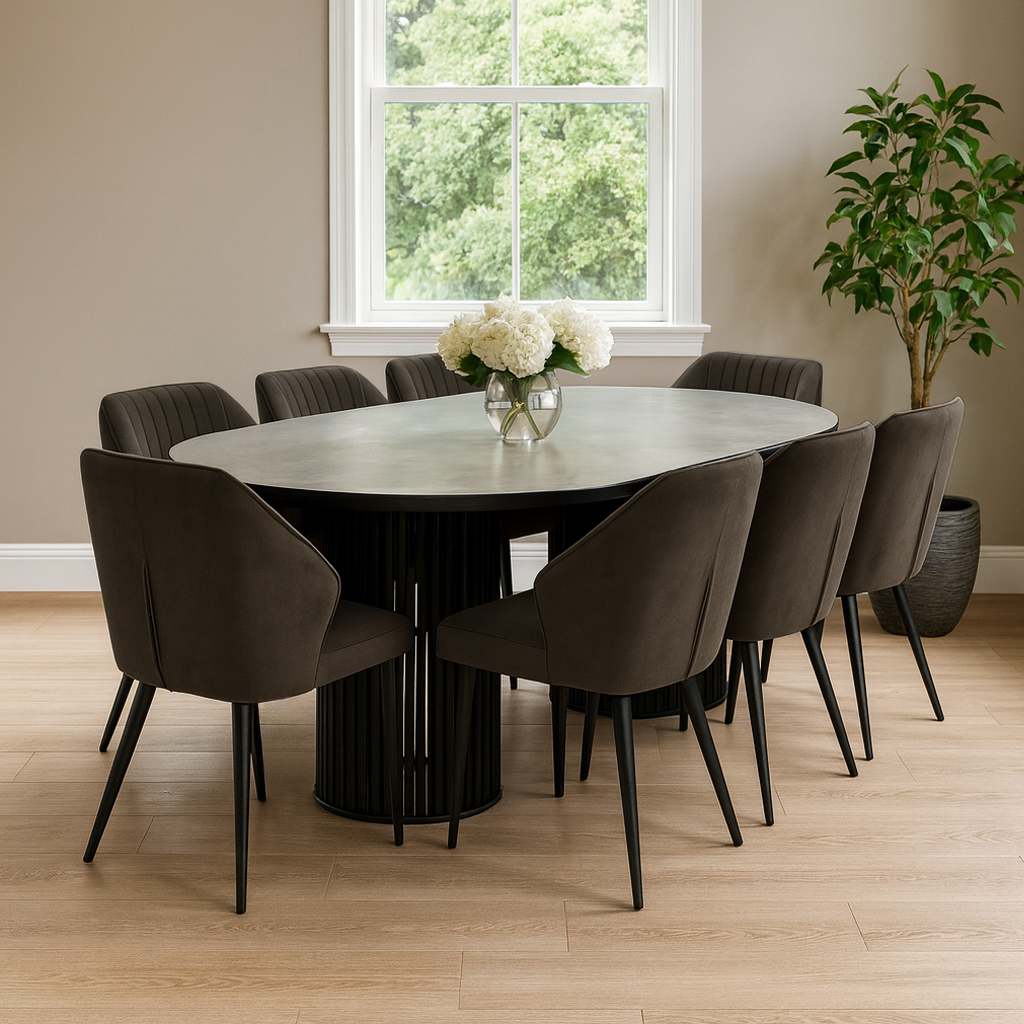 სასადილო გარნიტური MAMADOMA ASKAR SOFT-200 1+8 ONYX PREMIUM СЕР/CH MICHAEL ЧЕРНЫЙ/BROWN LUX B29 (7)