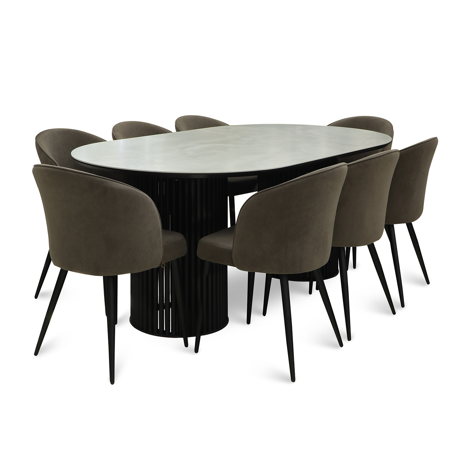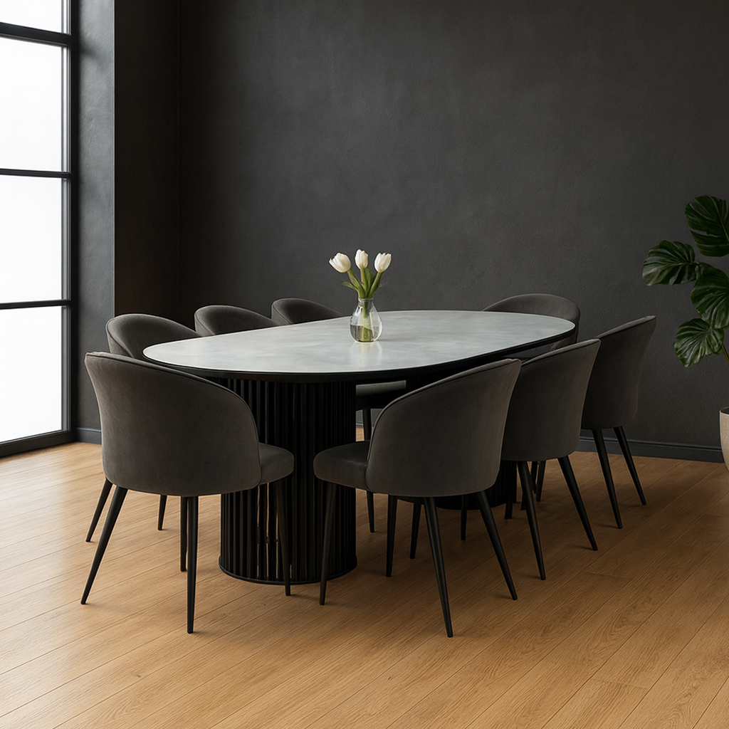 სასადილო გარნიტური MAMADOMA ASKAR SOFT-200 1+8 ONYX PREMIUM СЕР/CH TEDDY, ЧЕРНЫЙ/BROWN LUX B29 (7)