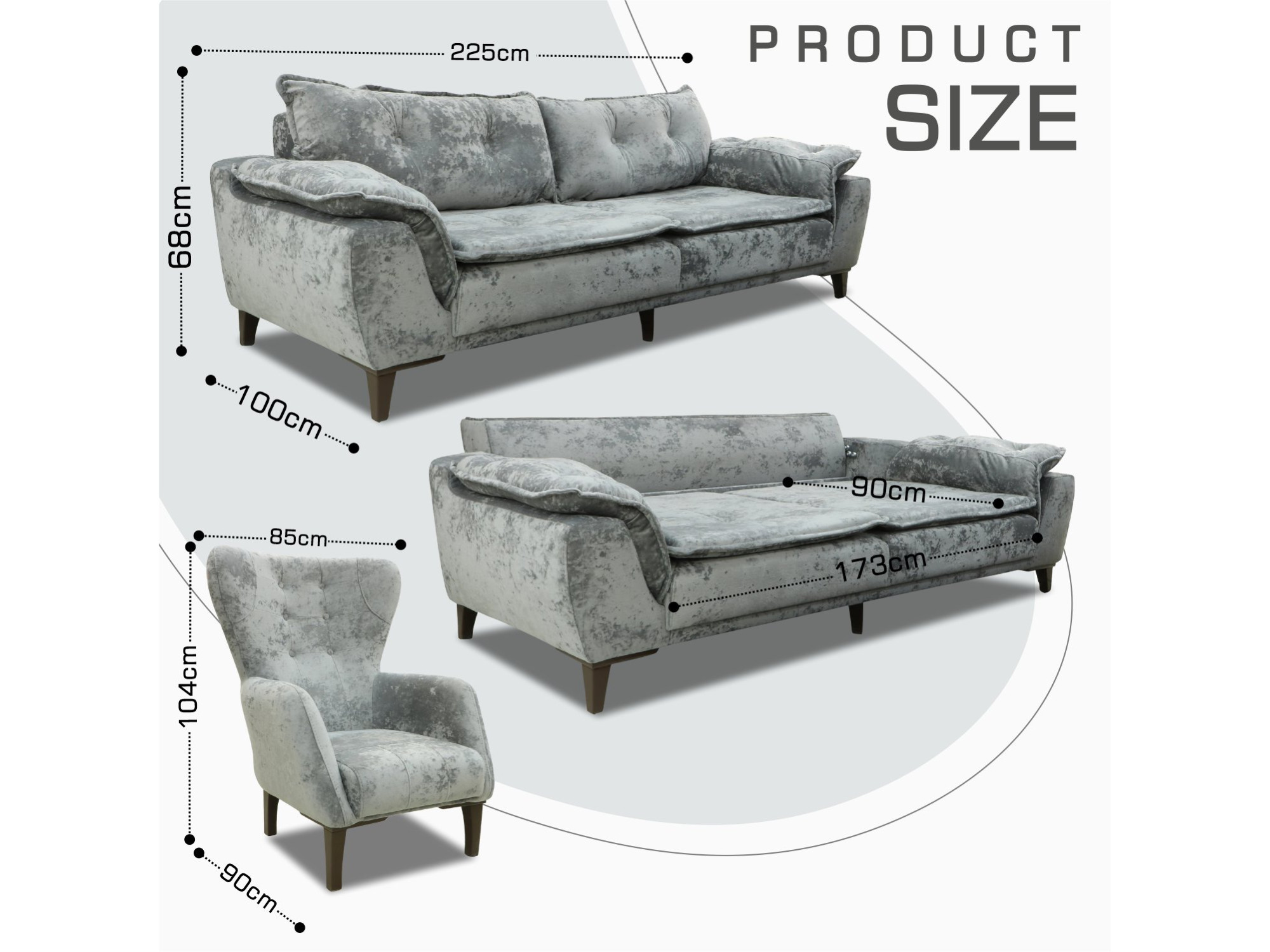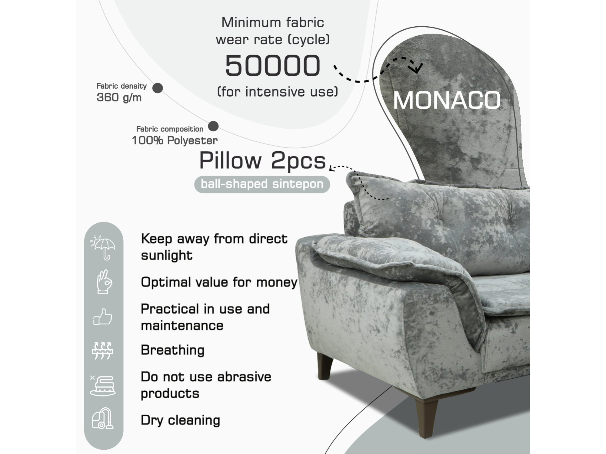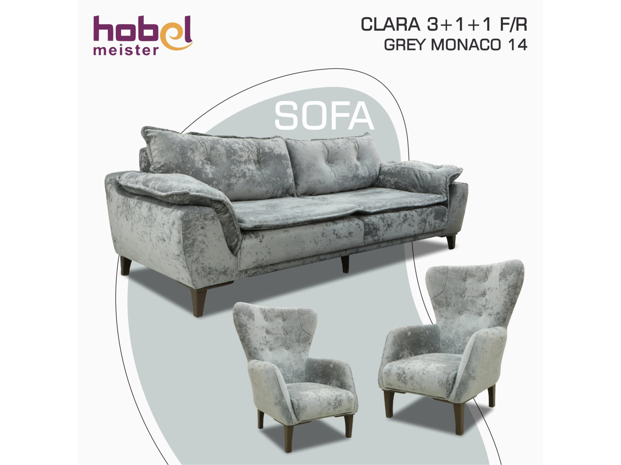 გარნიტური HOBEL CLARA 3+1+1 F/R GREY MONACO 14 (3)