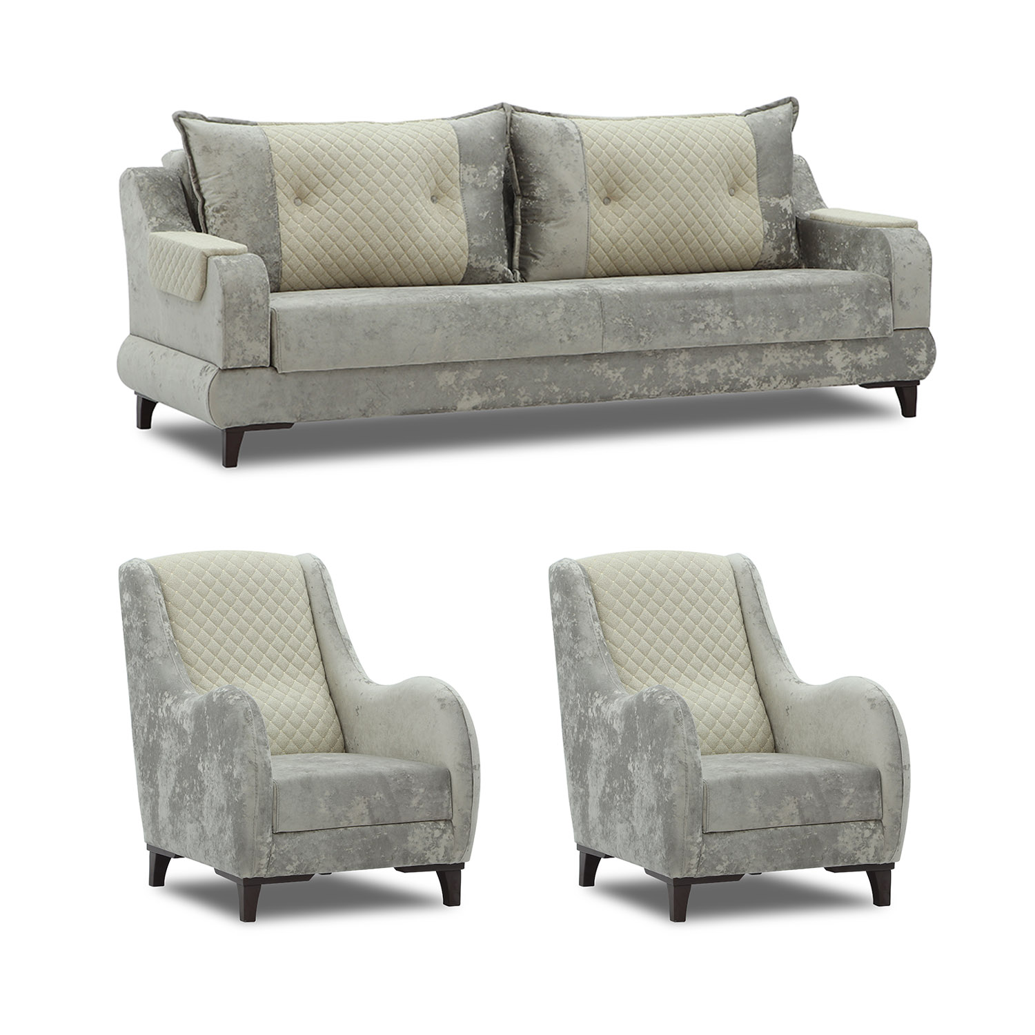 პროდუქტის აღწერა გარნიტური HOBEL OLIVIA 3+1+1 F/R CAPPUCCINO MONACO 4/BUKLE 4 (4)