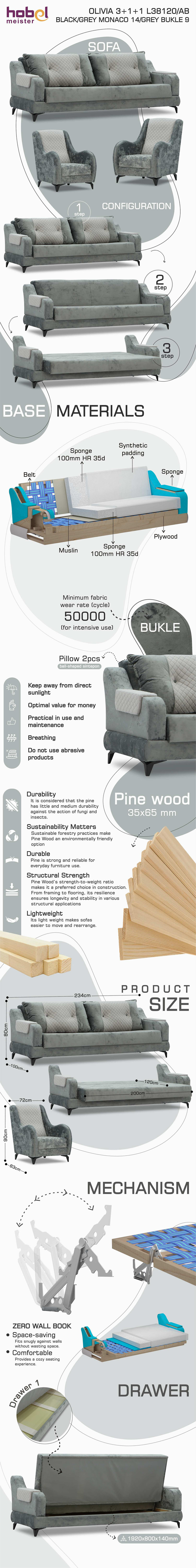 მოდელი: OLIVIA 3+1+1 L38120/AB BLACK/GREY MONACO 14/GREY BUKLE 9 (4)