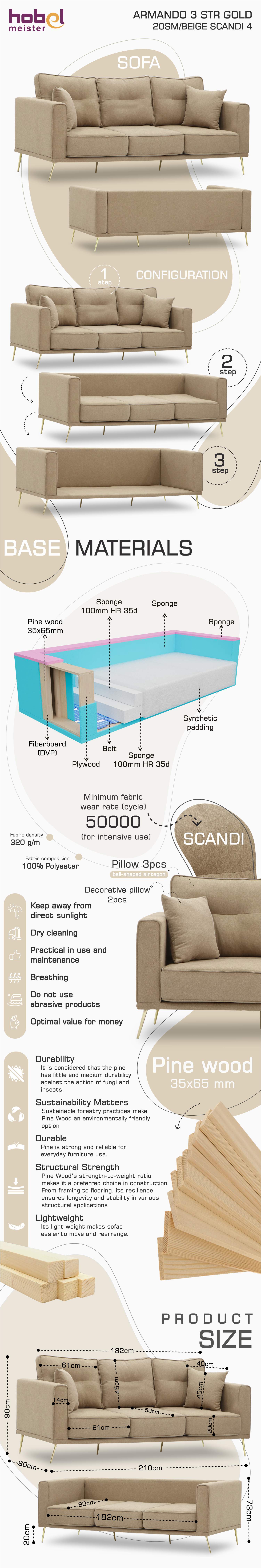 ძირითადი ატრიბუტები დივანი HOBEL ARMANDO 3 STR GOLD 20SM/BEIGE SCANDI 4 (1)