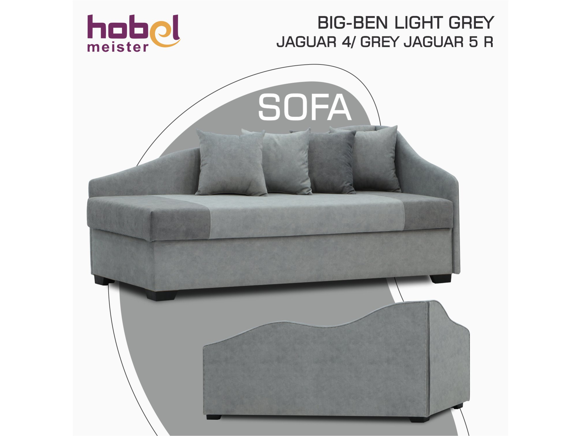 პროდუქტის აღწერა დივანი HOBEL BIG-BEN LIGHT GREY JAGUAR 4/ GREY JAGUAR 5 R (2)