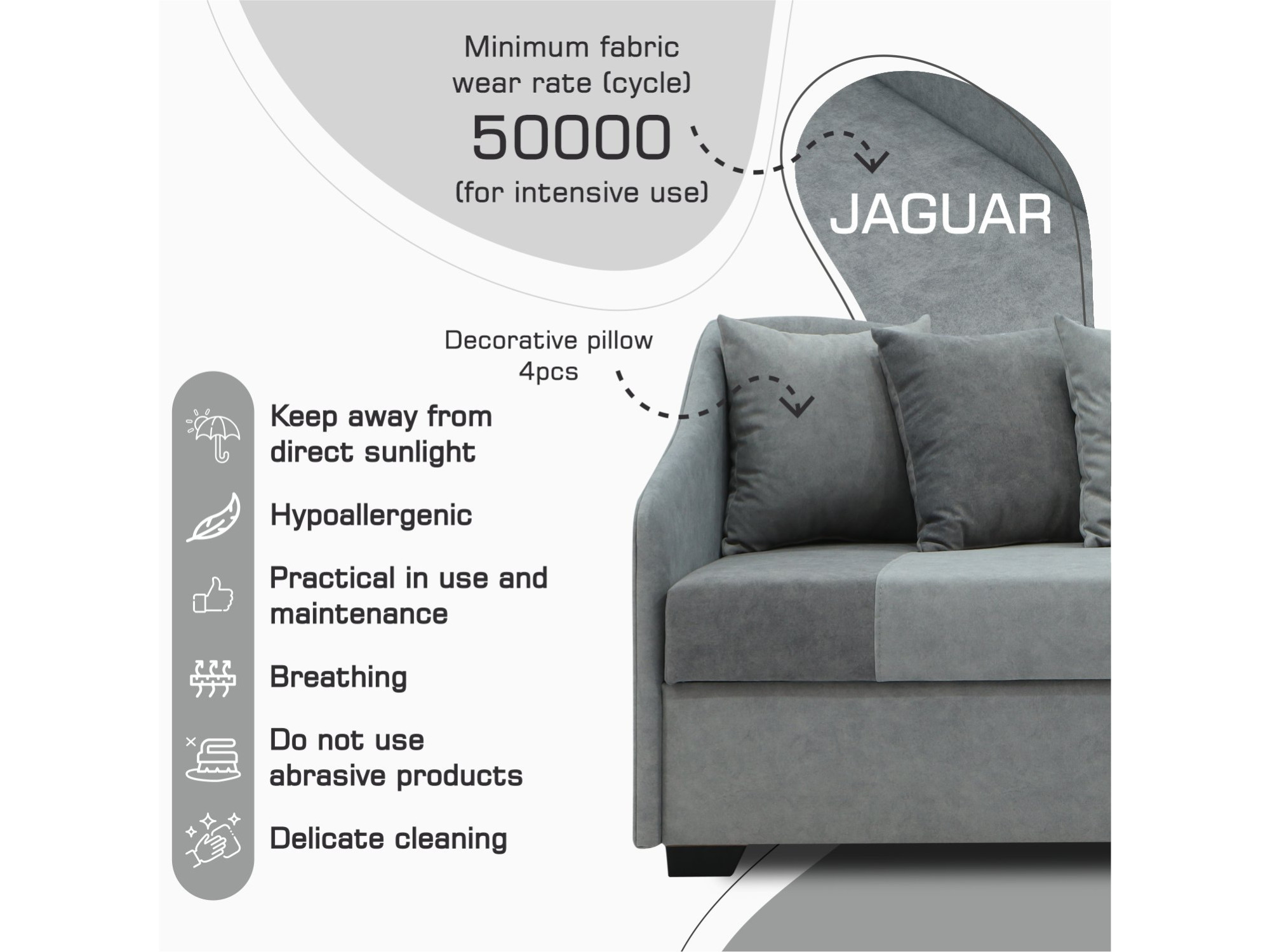 ძირითადი ატრიბუტები დივანი HOBEL BIG-BEN LIGHT GREY JAGUAR 4/ GREY JAGUAR 5 R (2)