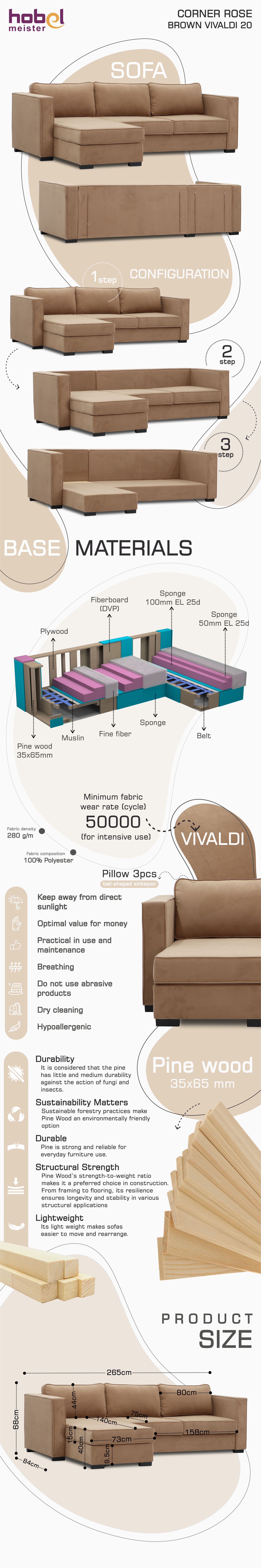 ძირითადი ატრიბუტები დივანი HOBEL CORNER ROSE BROWN VIVALDI 20 (4)