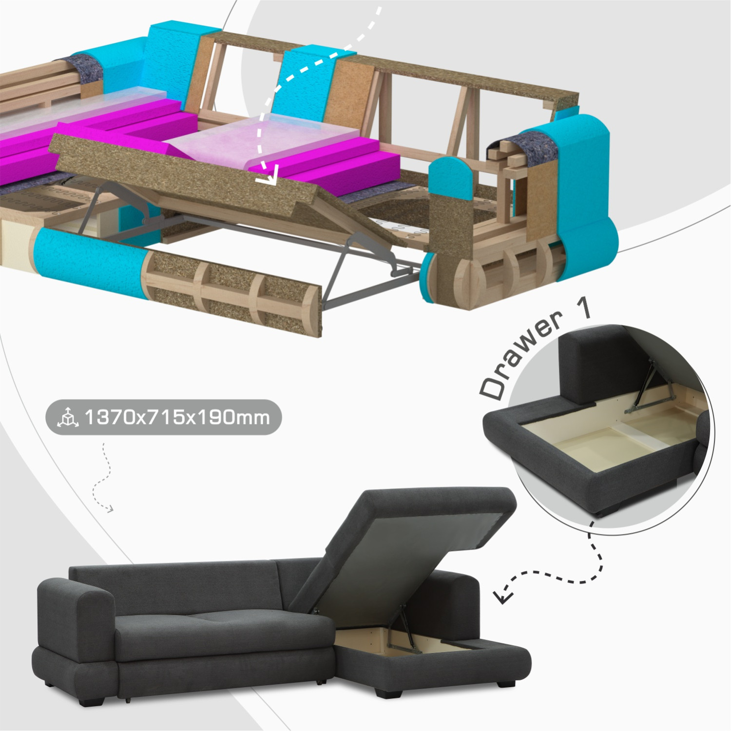 ძირითადი ატრიბუტები დივანი HOBEL CORNER SIDNEY PLUS DARK GREY BUKLE 15 R (3)