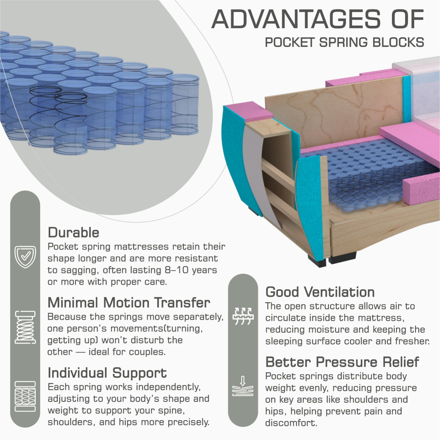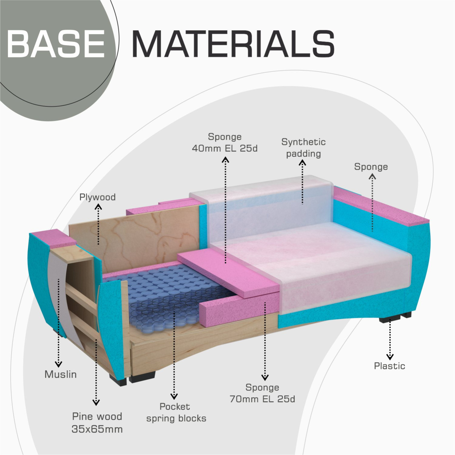 ძირითადი მასალა Bonnel spring system,siliconized fiber 300 gr.