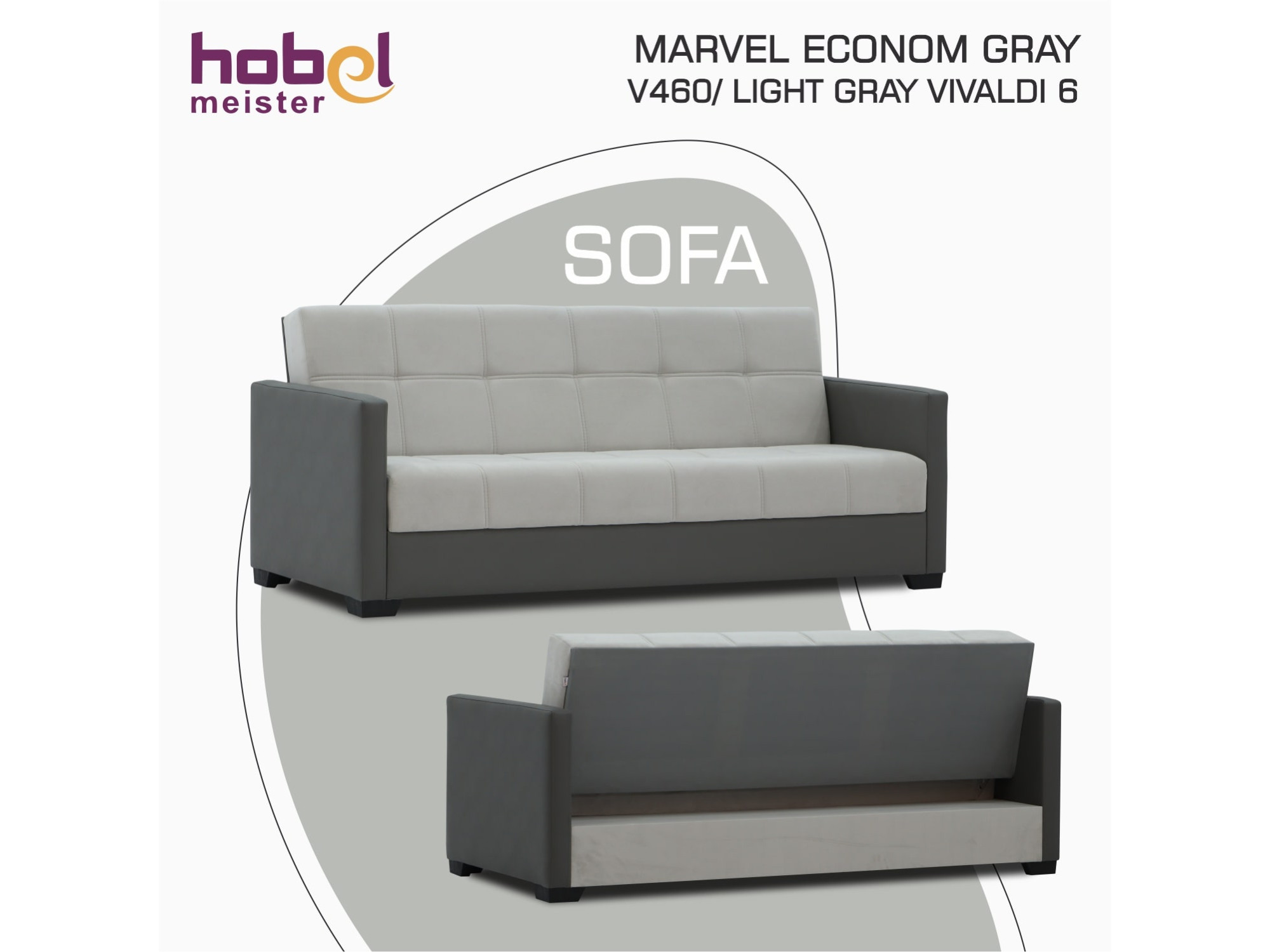 პროდუქტის აღწერა დივანი HOBEL MARVEL ECONOM GRAY V460/ LIGHT GRAY VIVALDI 6 (2)