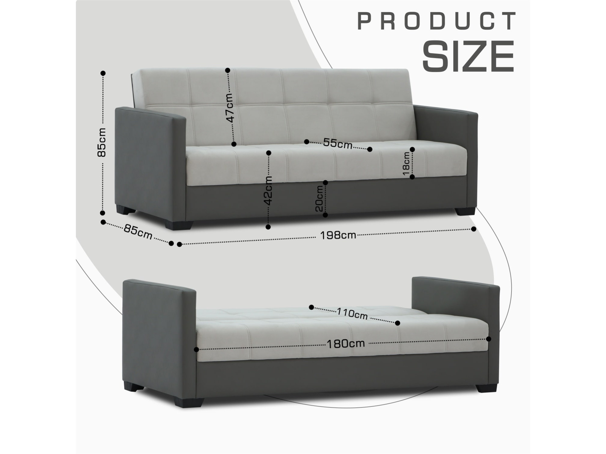 საძილე ადგილის ზომა სიგანეxსიღრმე (სმ)