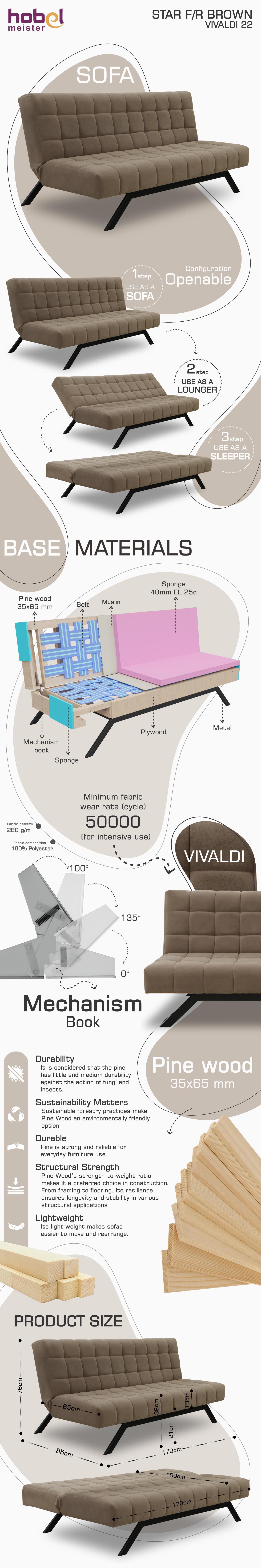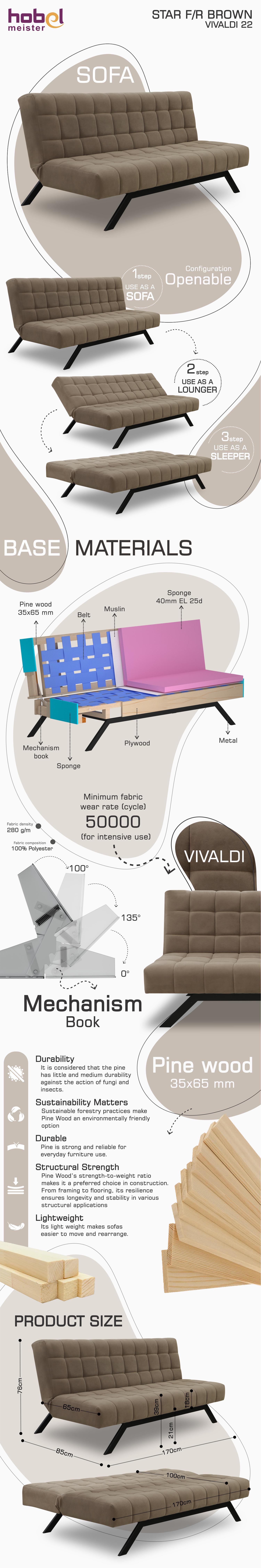 ძირითადი ატრიბუტები დივანი HOBEL STAR F/R BROWN VIVALDI 22 (2)