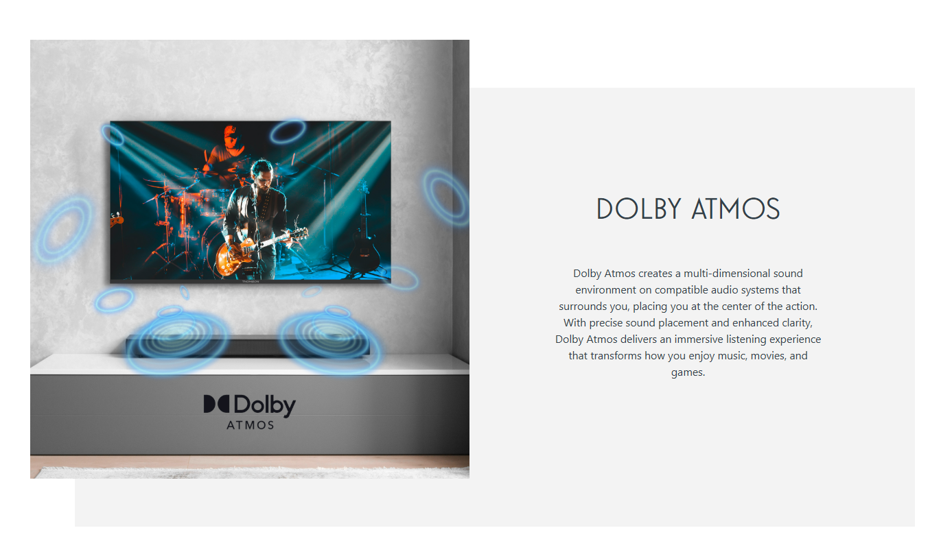 • Dolby Audio, Dolby Atmos, Digital Surround