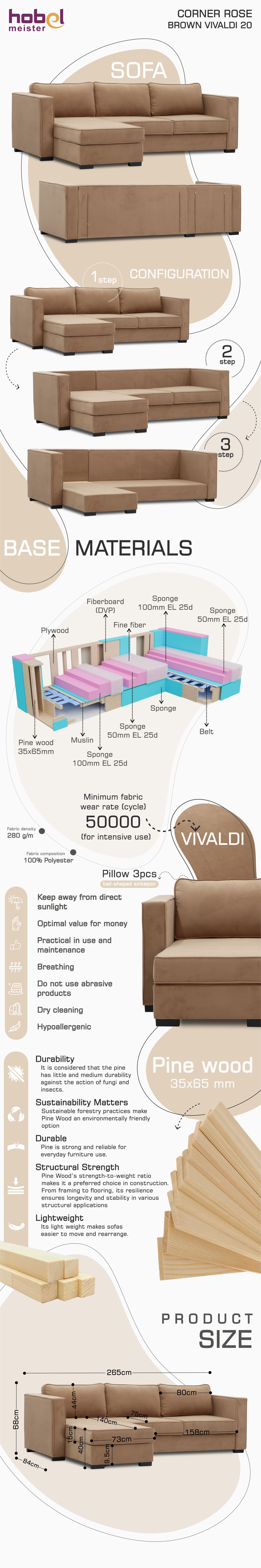 Основные характеристики диван HOBEL CORNER ROSE BROWN VIVALDI 20 (4)