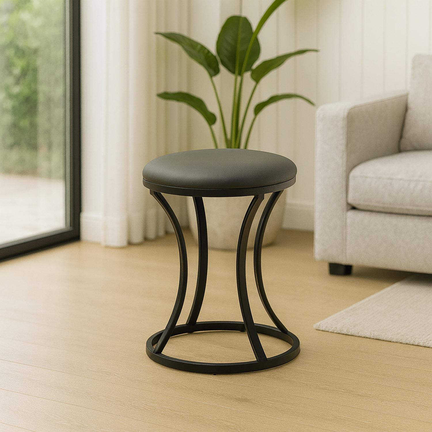 табурет и пуф HOBEL RING METAL BLACK/LEATHER GREY (1)
