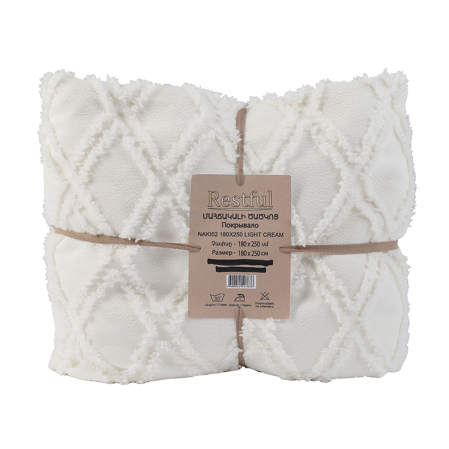 ძირითადი ატრიბუტები გადასაფარებელი RESTFUL NAKI02 180X250 LIGHT CREAM