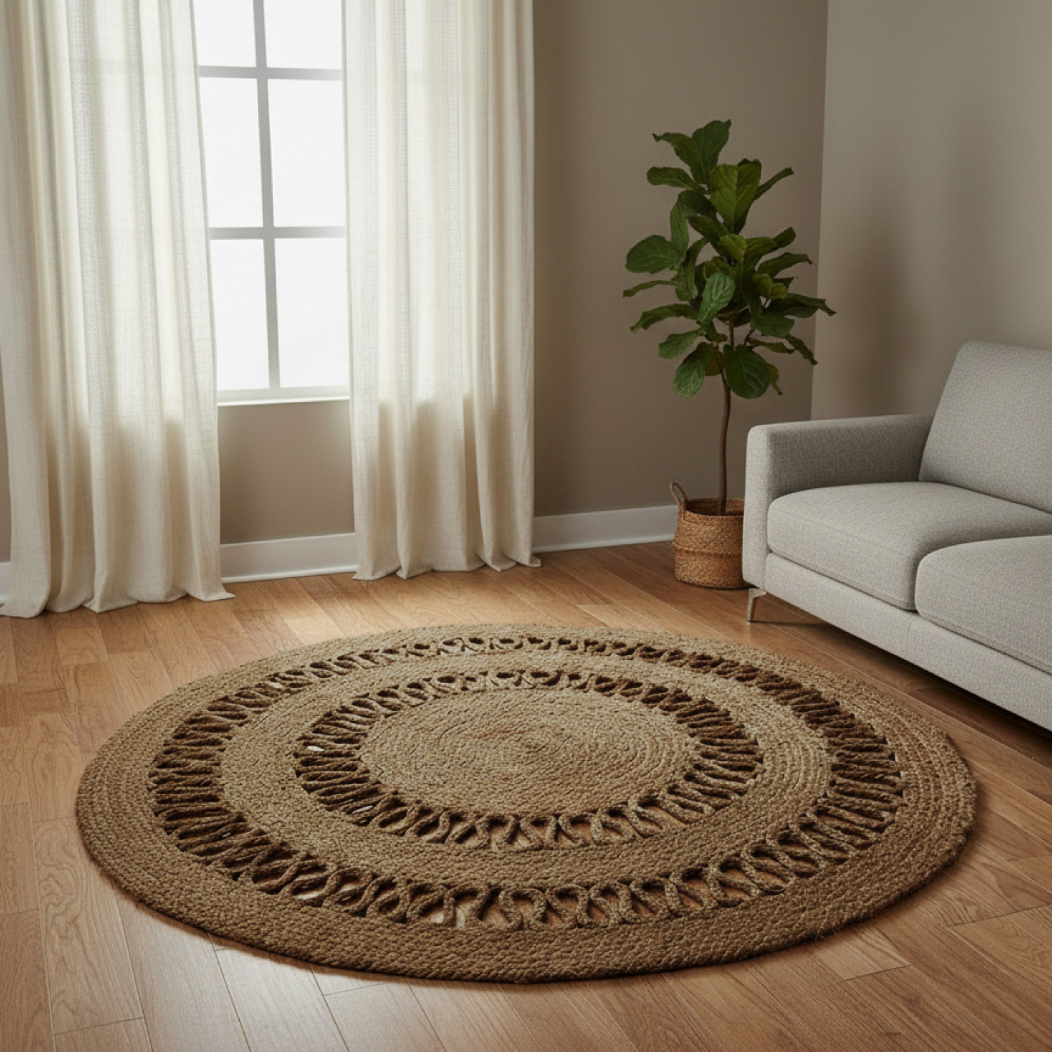 120CM ROUND BRAIDED JUTE