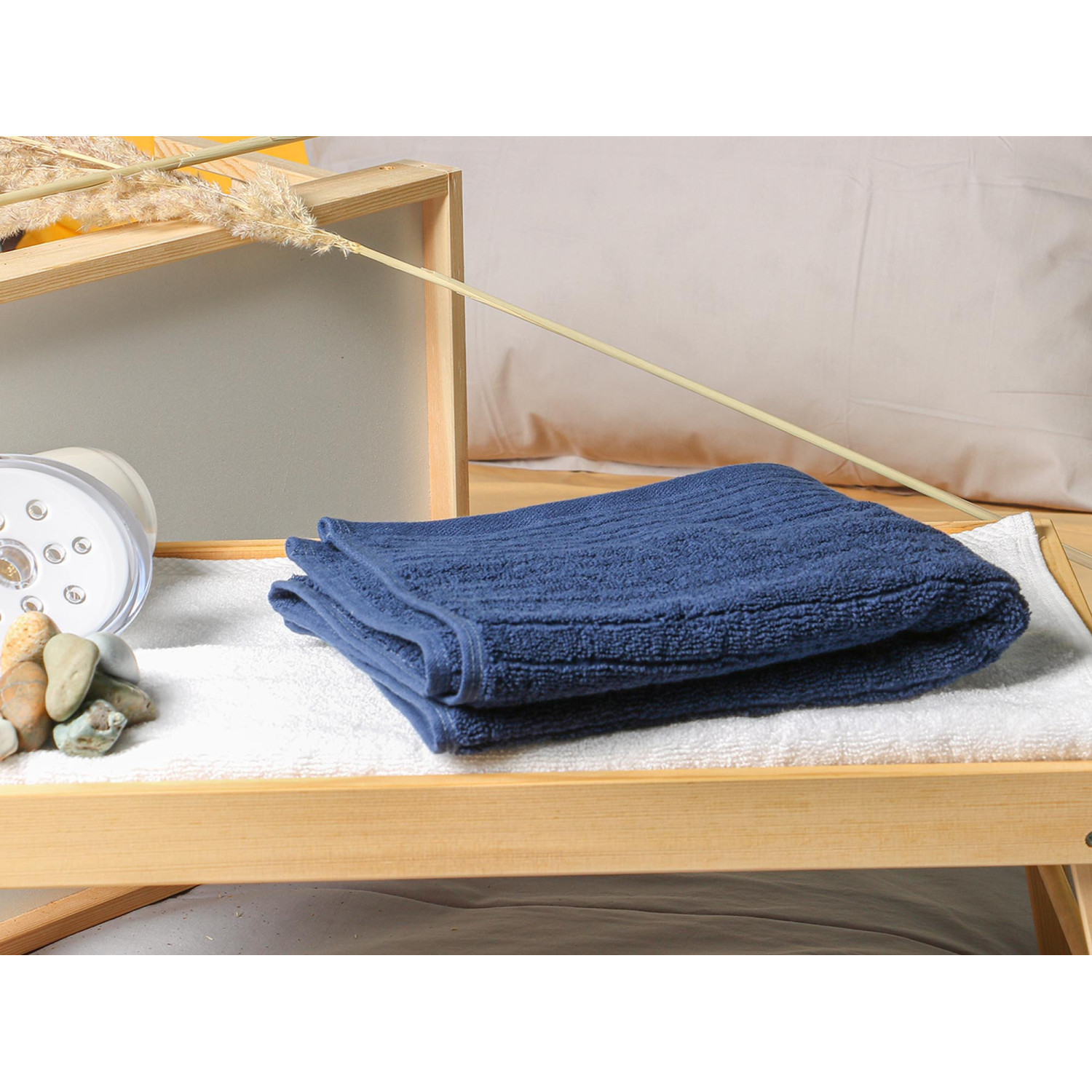 ძირითადი ატრიბუტები სახის პირსახოცი RESTFUL NAVY BLUE PEONY 500GSM 50X90