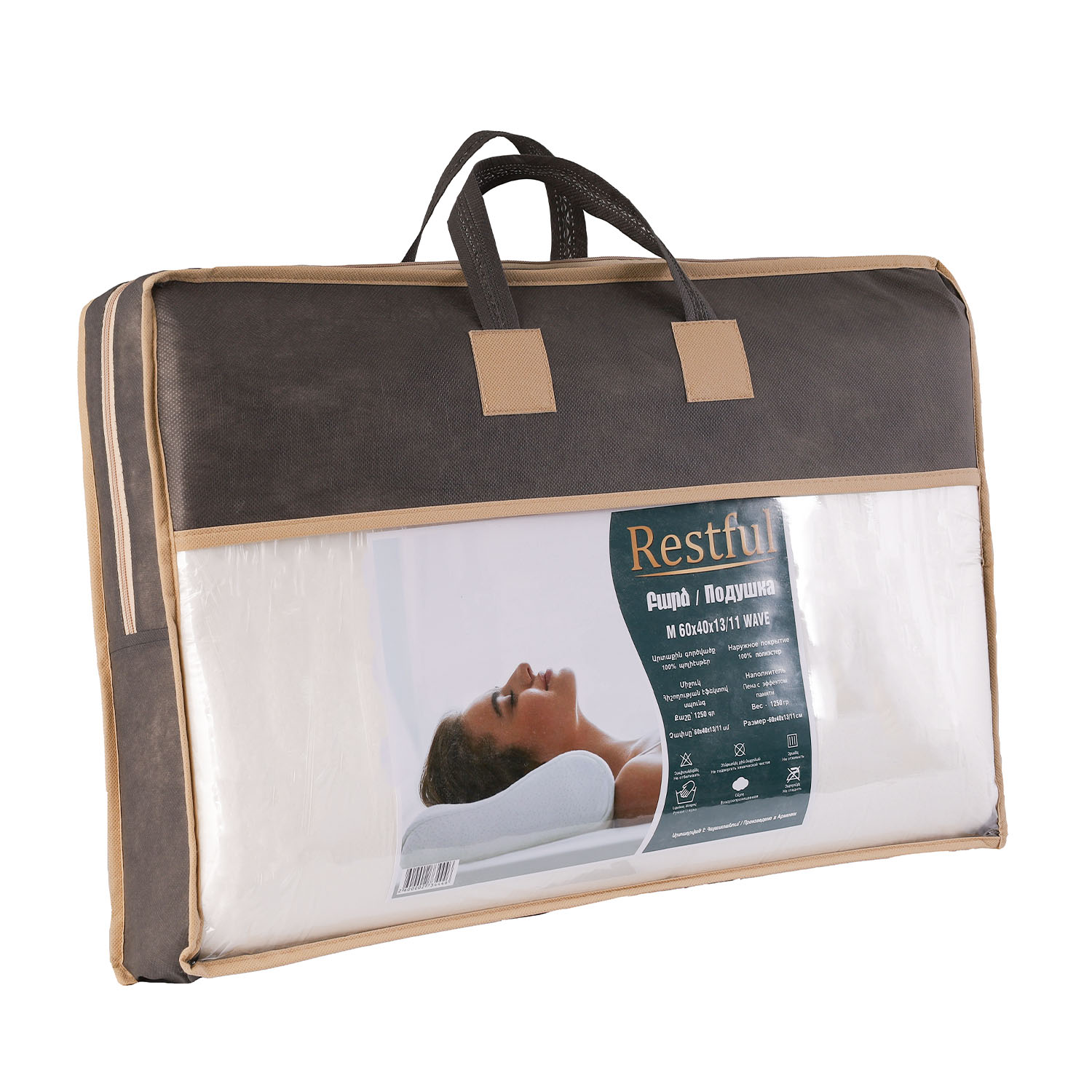 ძირითადი ატრიბუტები ბალიში RESTFUL M 60X40X13/11 WAVE