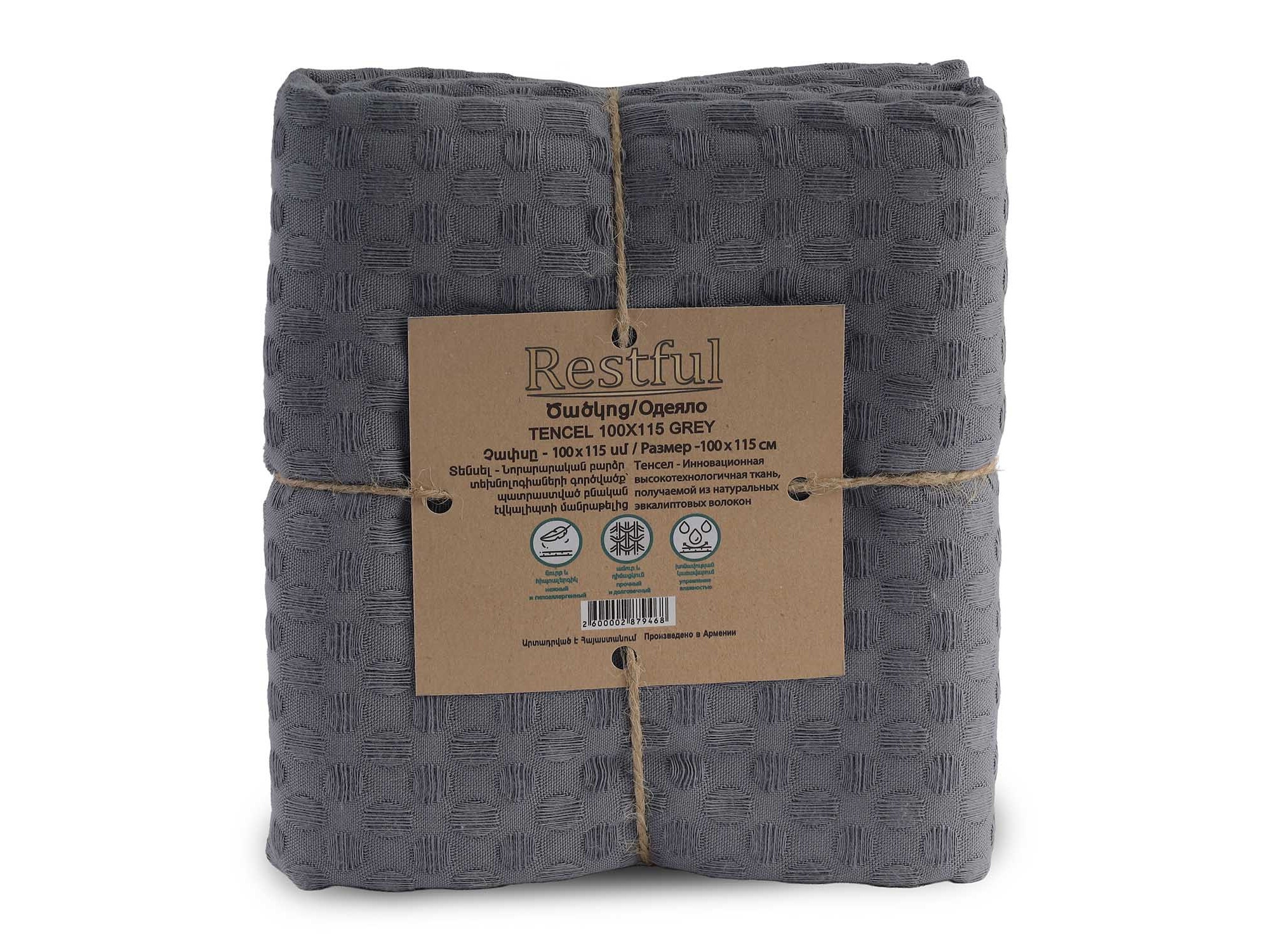 ძირითადი ატრიბუტები პლედი RESTFUL TENCEL 100X115 GREY