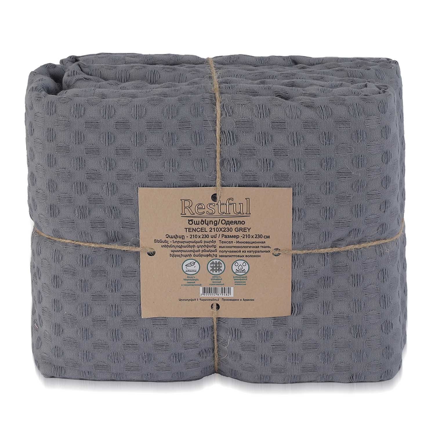 ძირითადი ატრიბუტები პლედი RESTFUL TENCEL 210X230 GREY