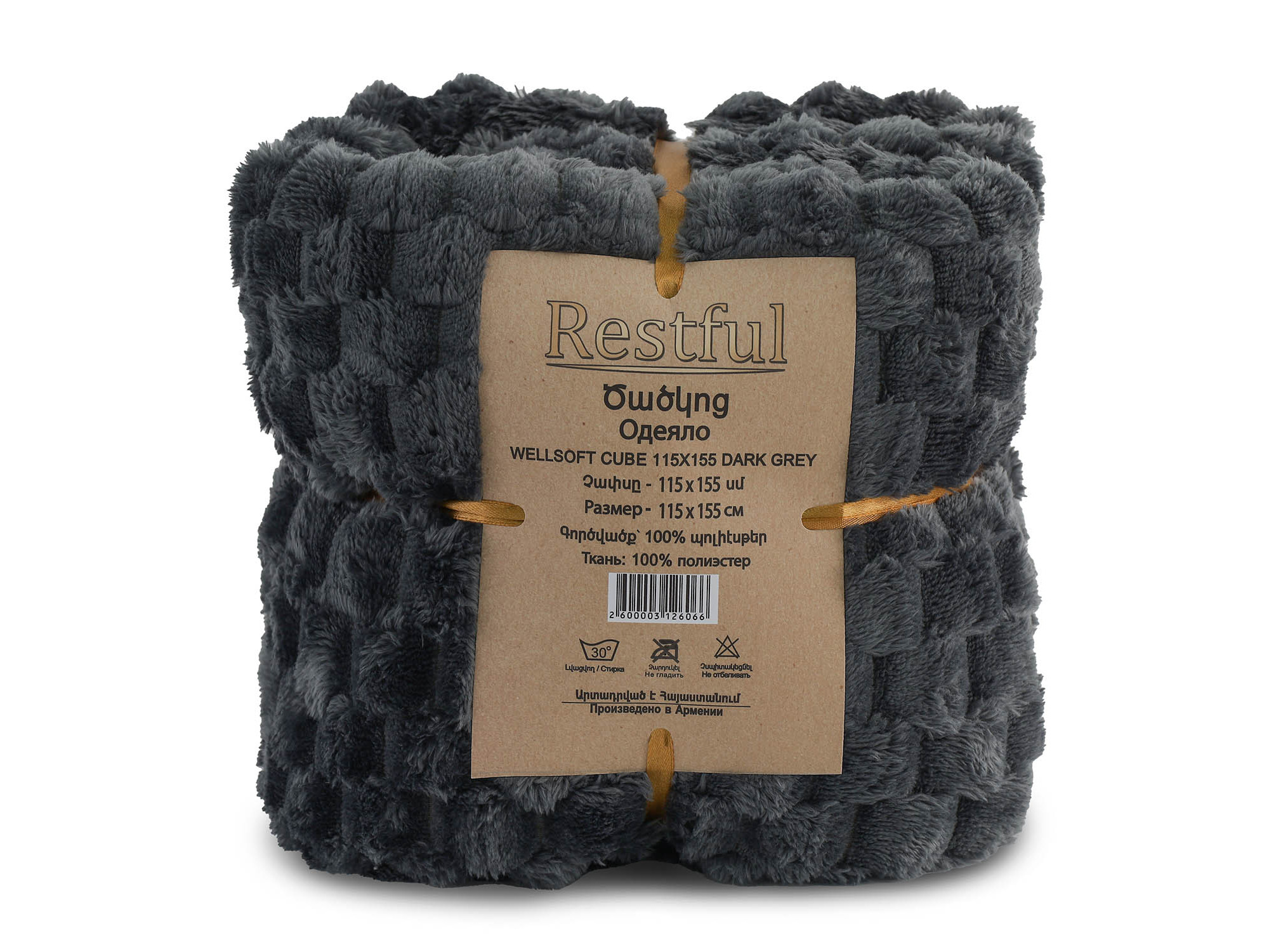 ძირითადი ატრიბუტები პლედი RESTFUL WELLSOFT CUBE 115X155 DARK GREY
